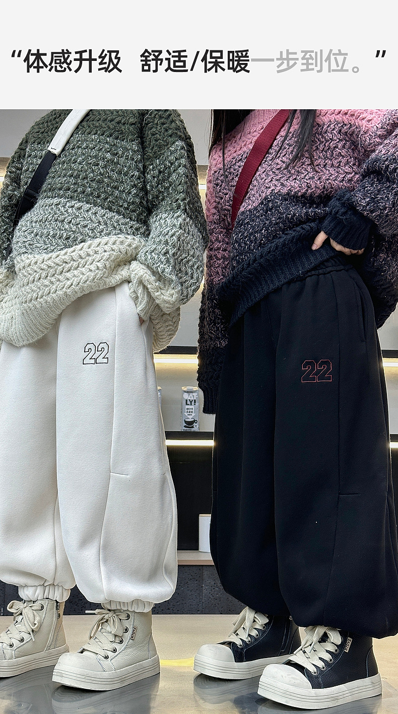 아동용 벨벳 바지 가을 겨울 소년 캐주얼 바지 겨울 2024 새로운 스타일 큰 어린이 소년 소녀 올인원 벨벳 스웨트 팬츠