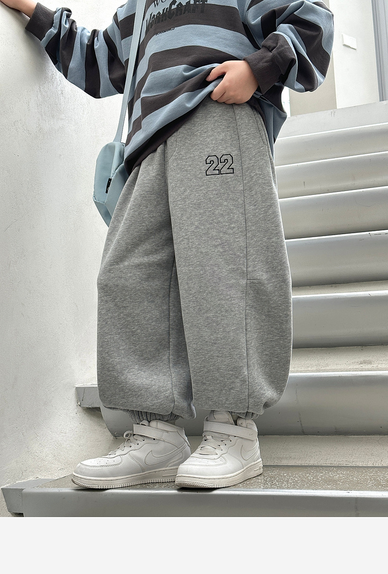 아동용 벨벳 바지 가을 겨울 소년 캐주얼 바지 겨울 2024 새로운 스타일 큰 어린이 소년 소녀 올인원 벨벳 스웨트 팬츠스토어 가기