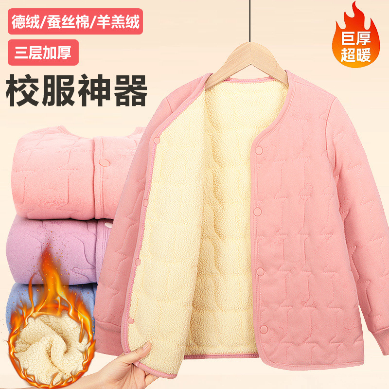 가을과 겨울 어린이 면화 패딩 코트 3 층 기모 두꺼운 학교 유니폼 코튼 패딩 재킷 작은면 패딩 코트 아기 실크 코트 착용