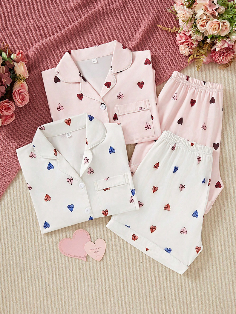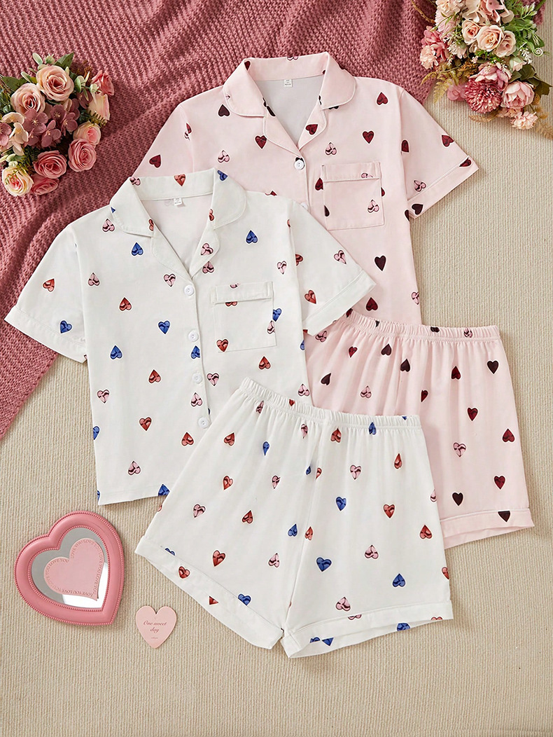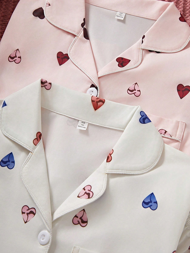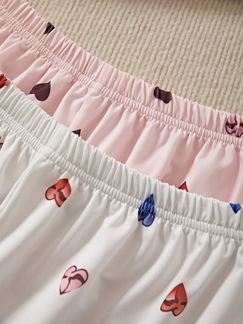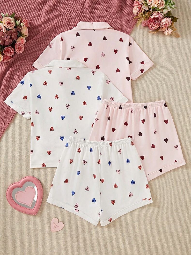 여름 청소년 속옷 면화 반팔 잠옷 세트 우유 실크 사랑 인쇄 어린이 홈 옷 투피스 팩