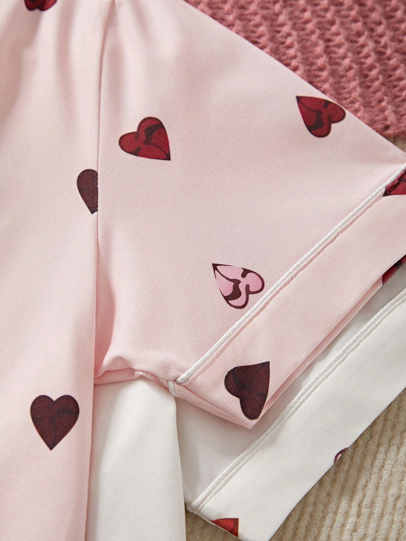 여름 청소년 속옷 면화 반팔 잠옷 세트 우유 실크 사랑 인쇄 어린이 홈 옷 투피스 팩스토어 가기