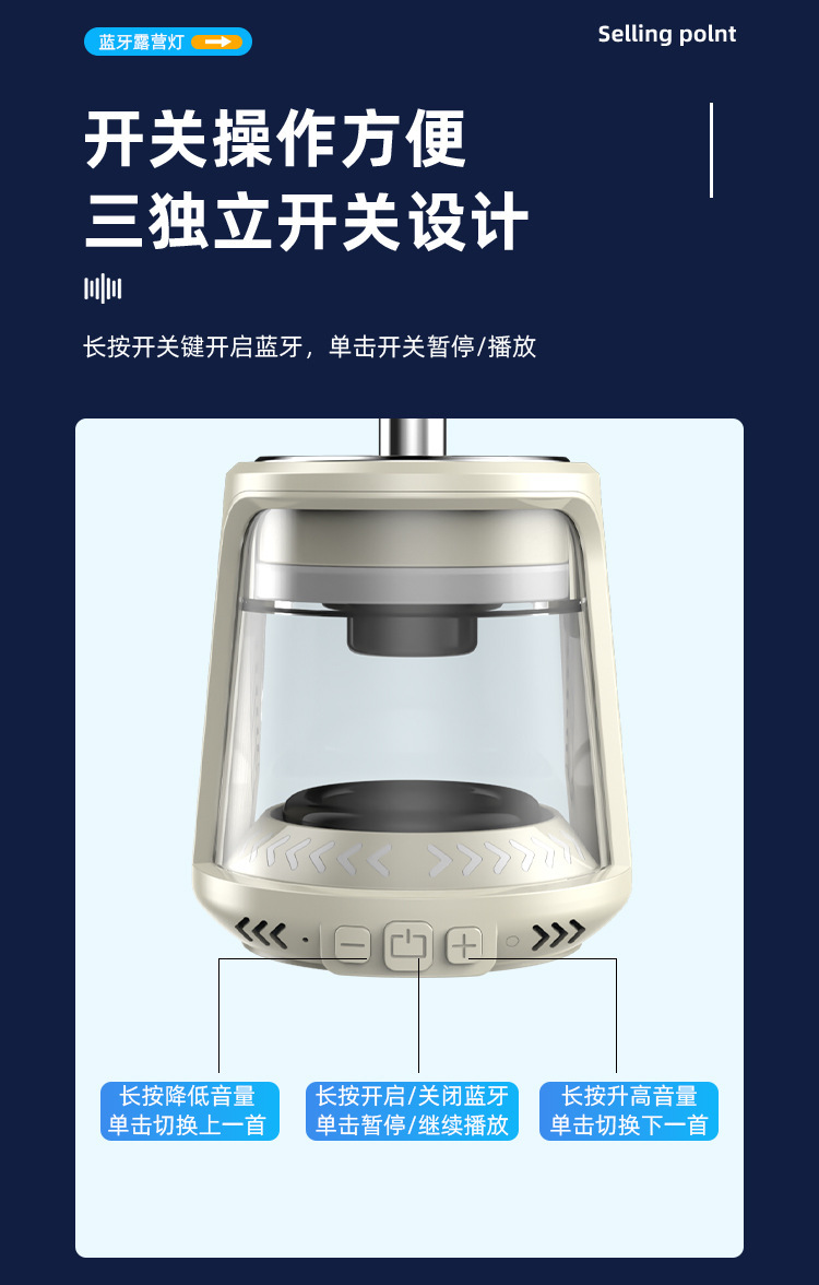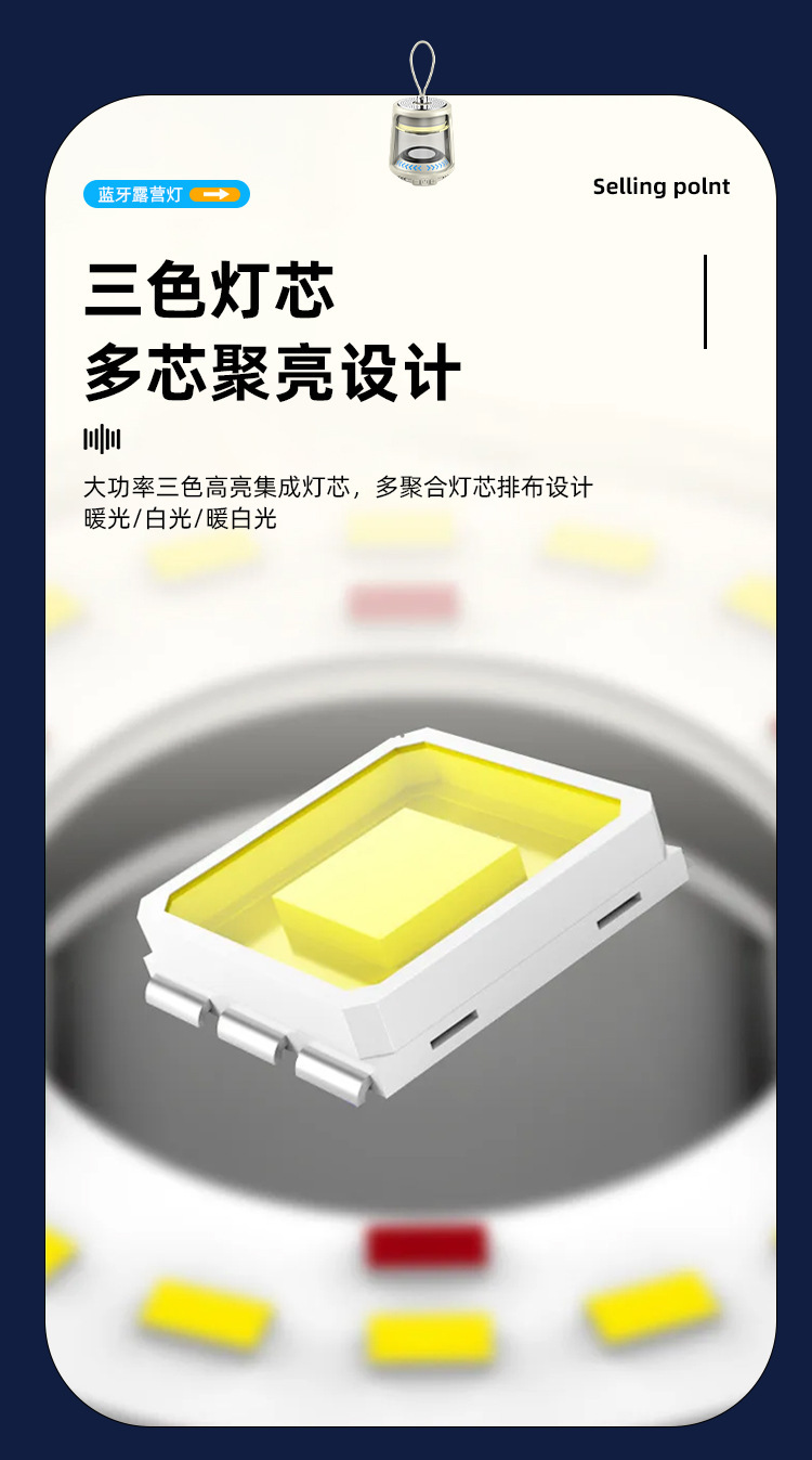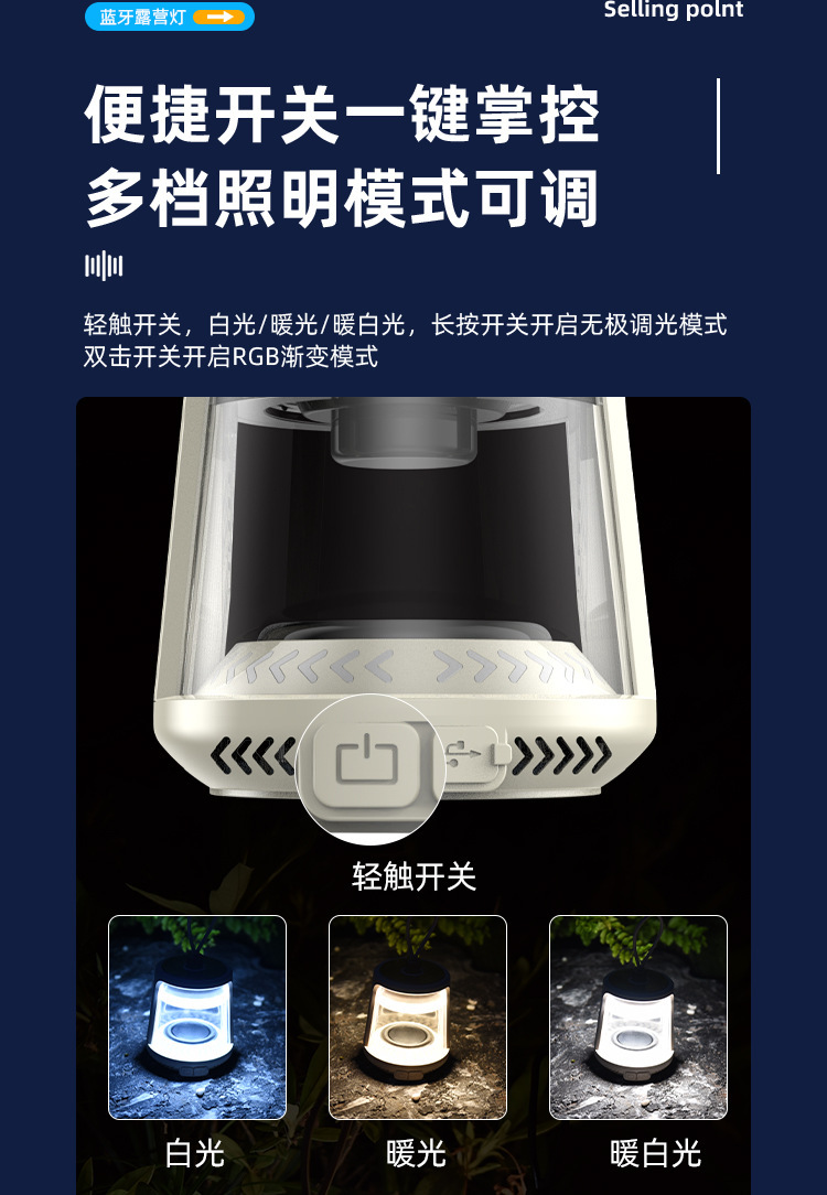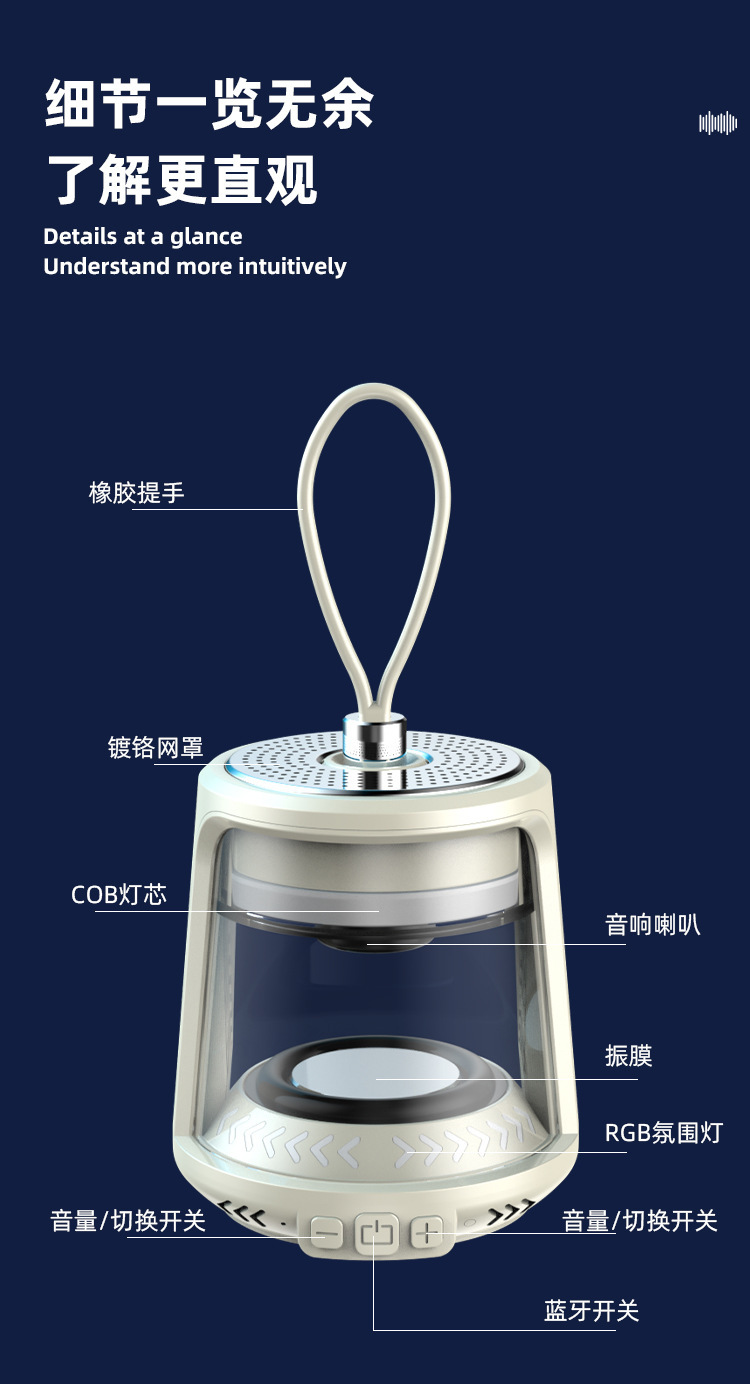 描述 白光,暖光,RJB氛围灯,无线蓝牙连接通话,音乐播放,配挂绳,带强磁可吸附。可配三角支架使用。