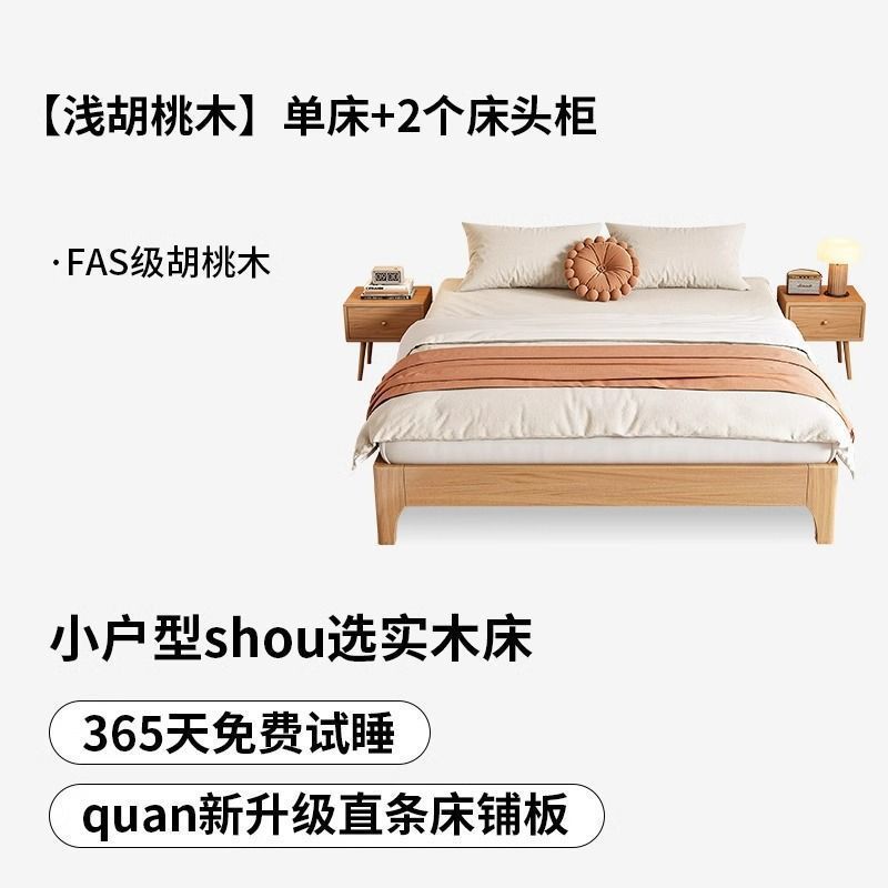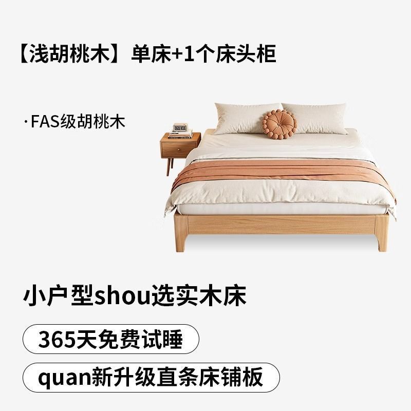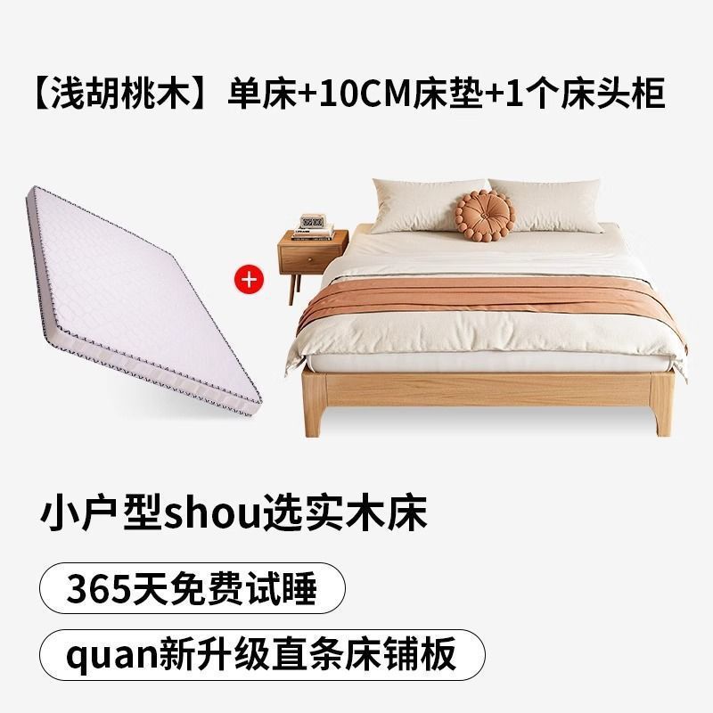• ❀❀모델 A 라이트 월넛 싱글 침대, 침대 옆 탁자 가방 2개 설치