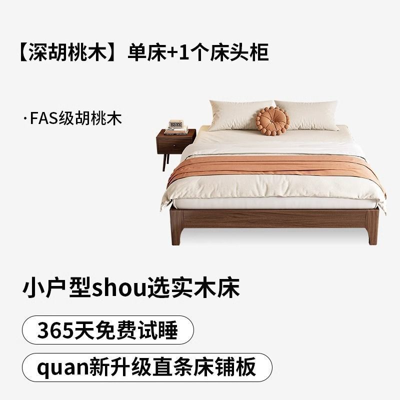 • ❀❀모델 B 다크 월넛 싱글 침대 침대 1개 침대 옆 탁자 가방 설치