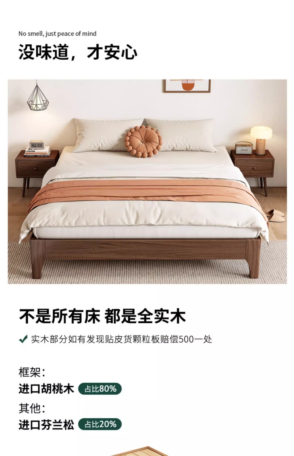 • ❀❀모델 A 라이트 월넛 싱글 침대 침대 1개 침대 옆 탁자 가방 설치