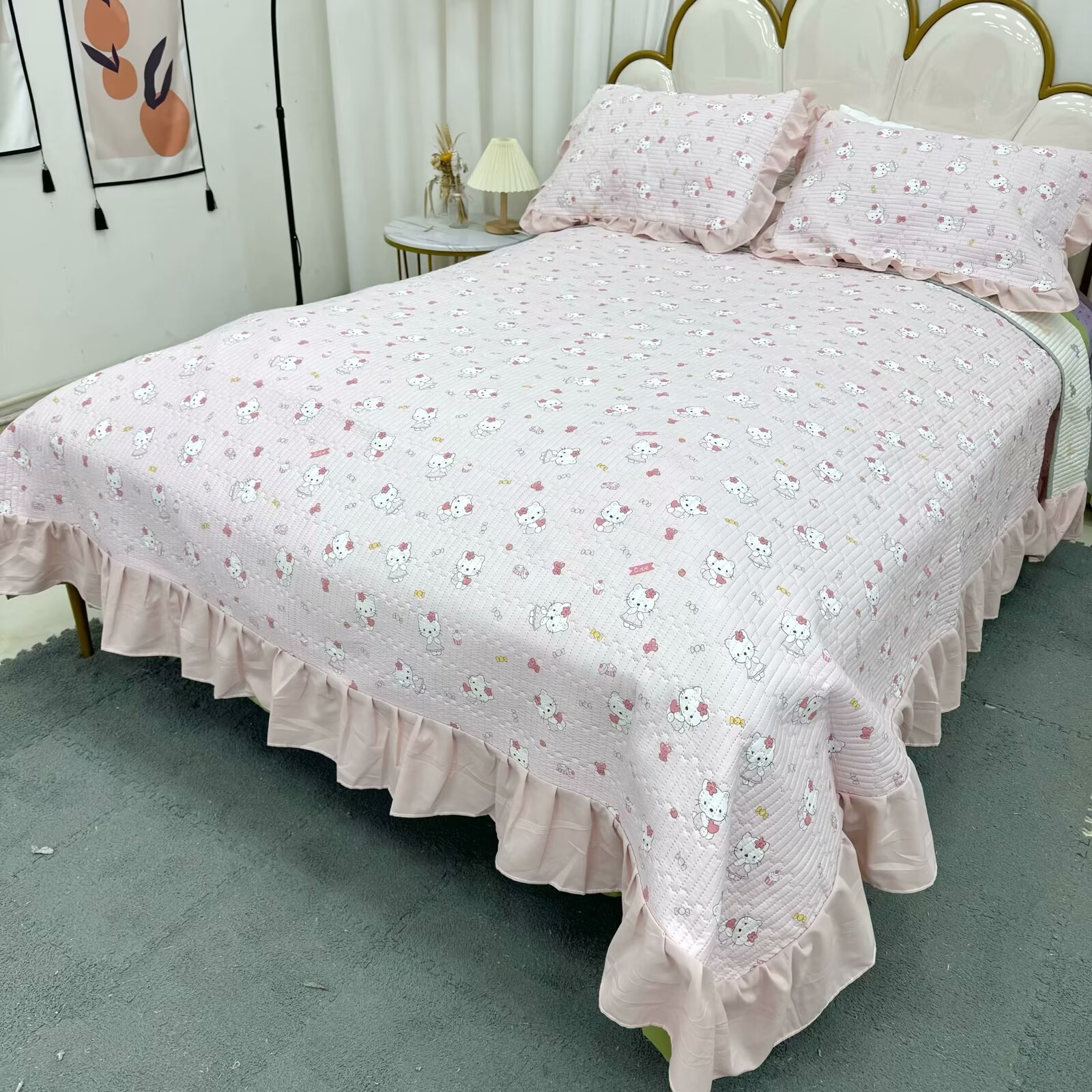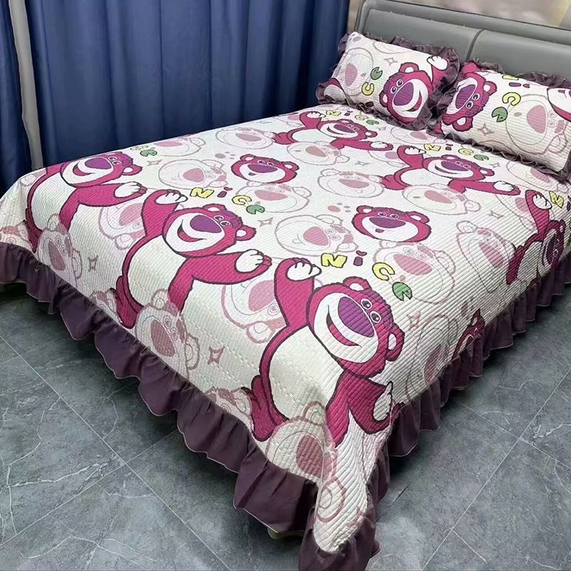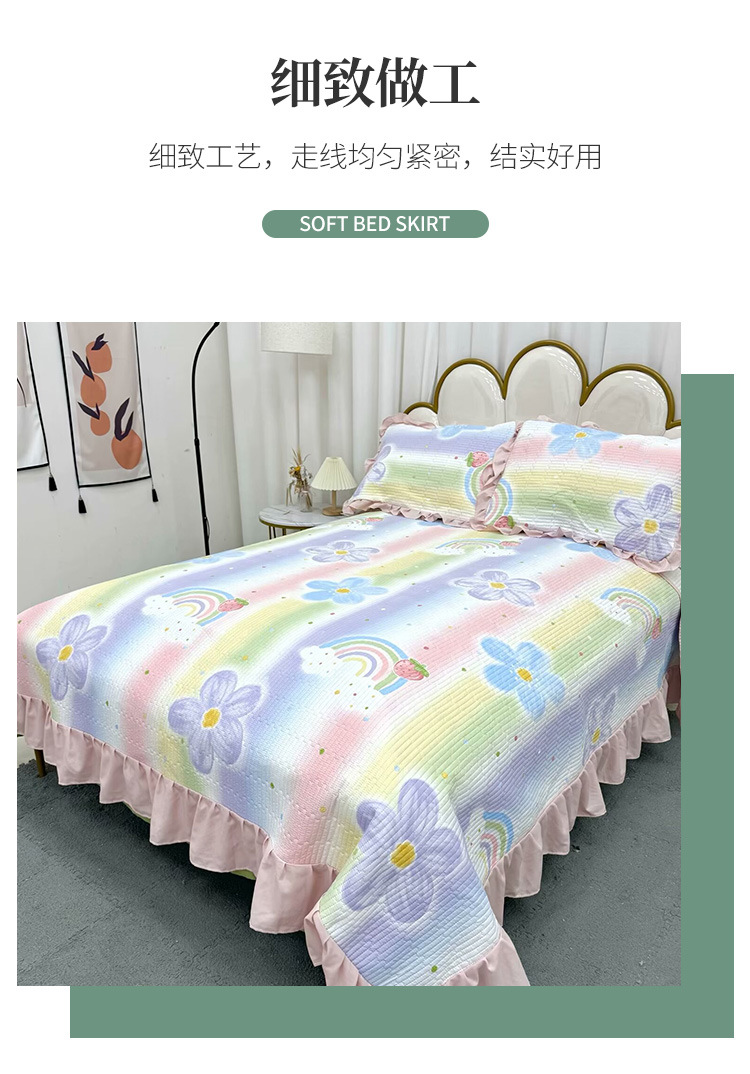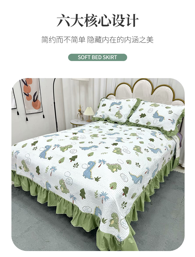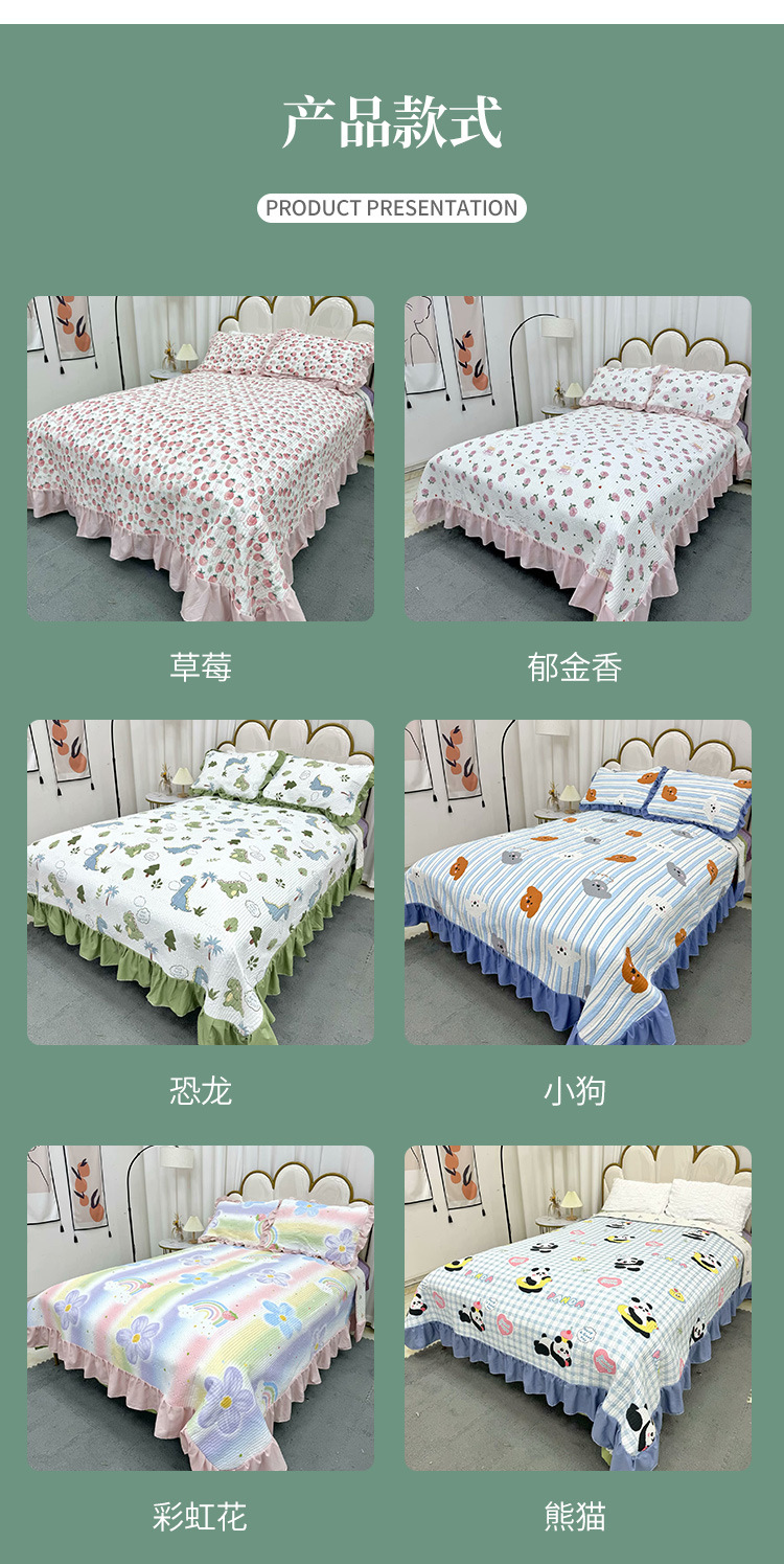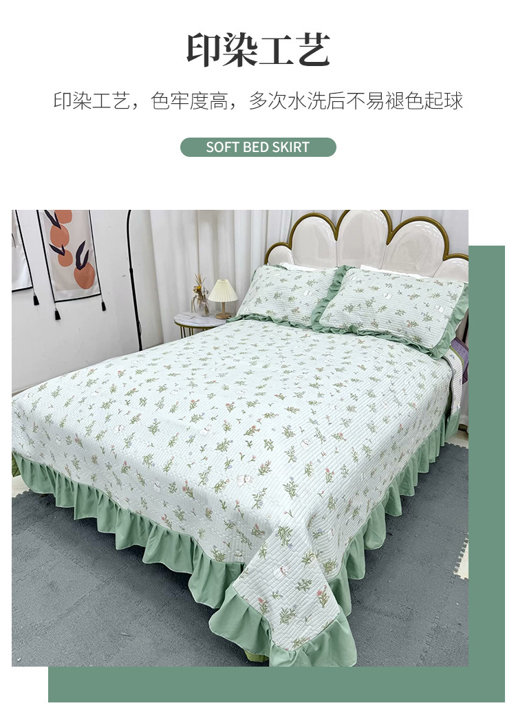 水洗棉花边三件套绗缝床裙双面盖毯榻榻米床单四季通用麻花边床盖스토어 가기