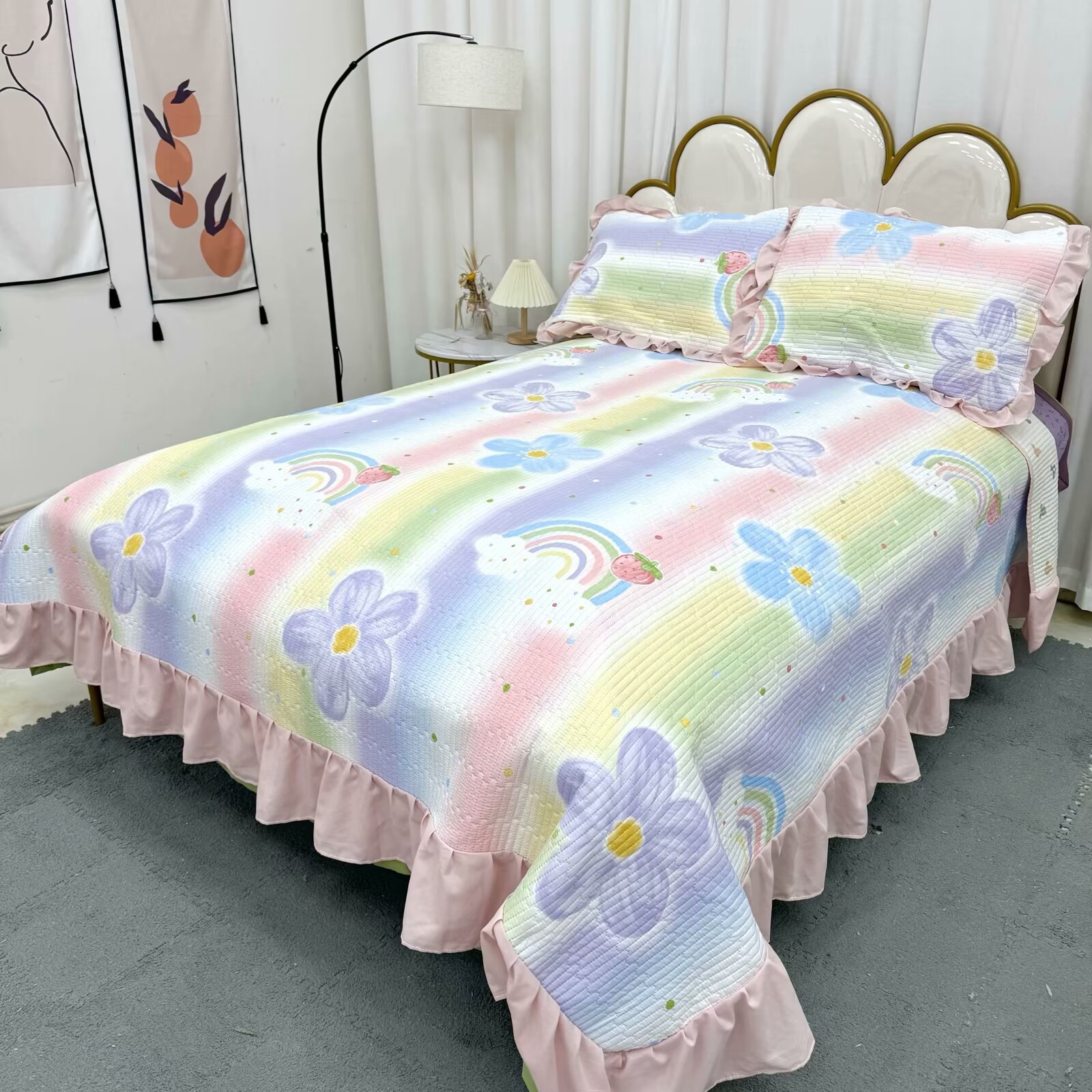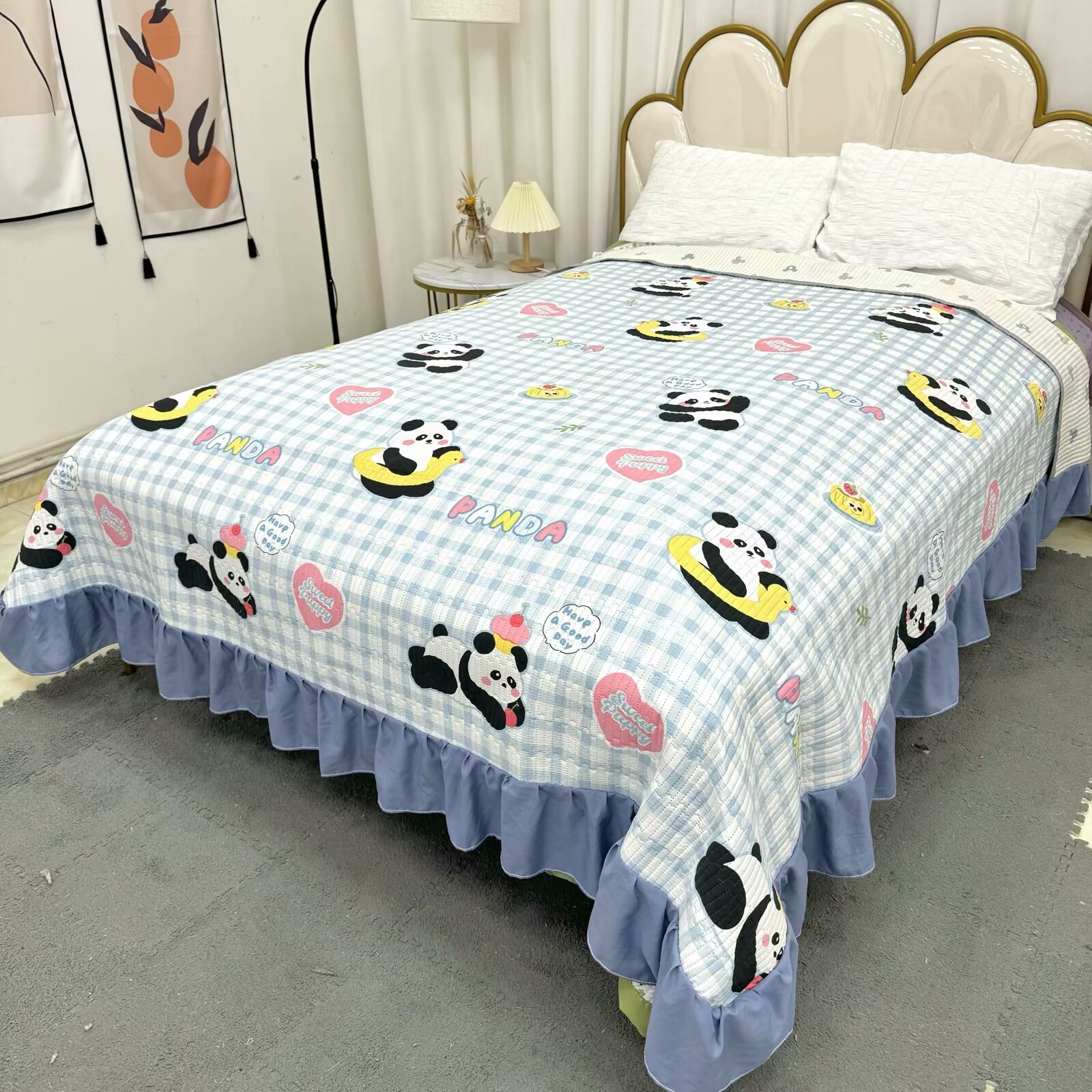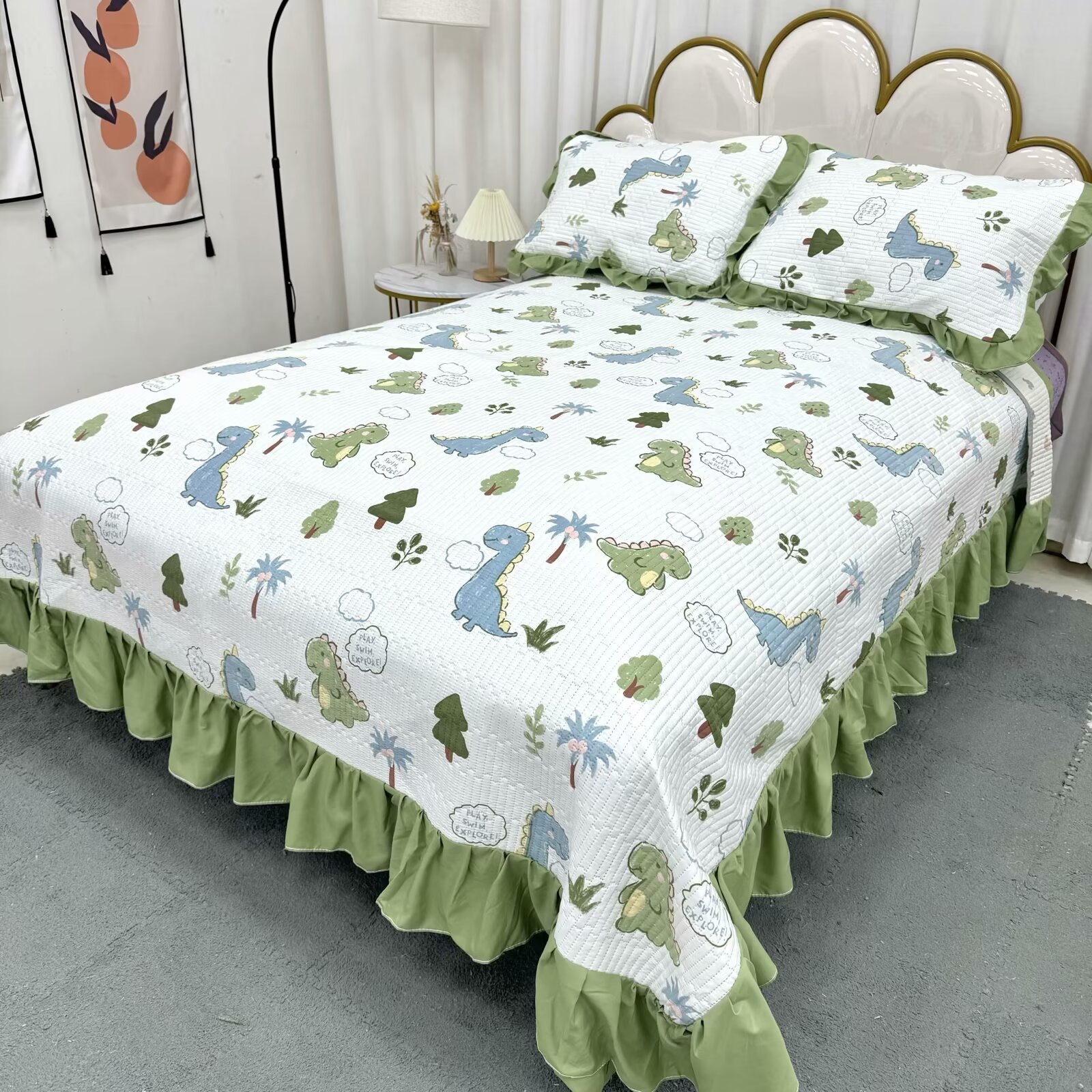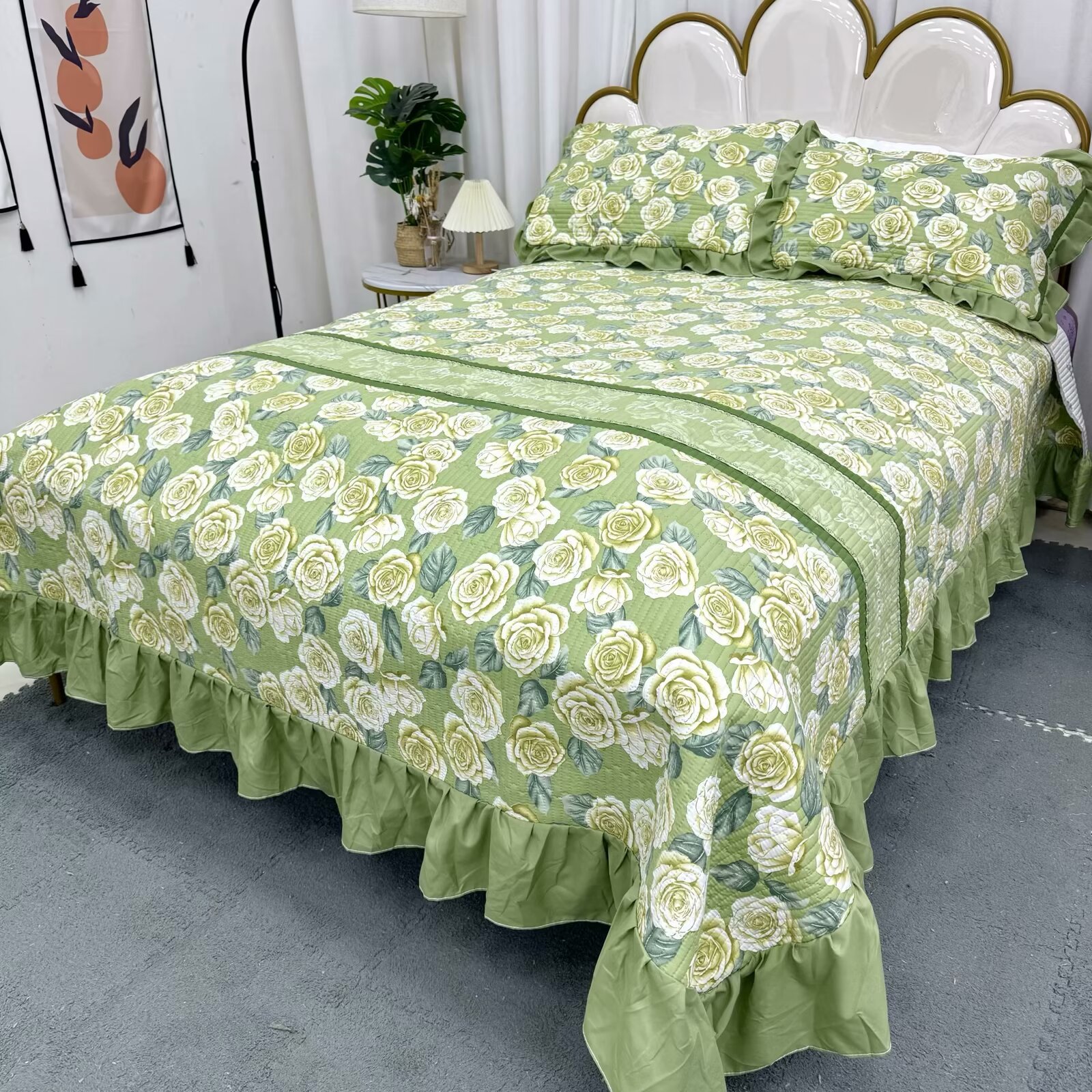 水洗棉花边三件套绗缝床裙双面盖毯榻榻米床单四季通用麻花边床盖스토어 가기