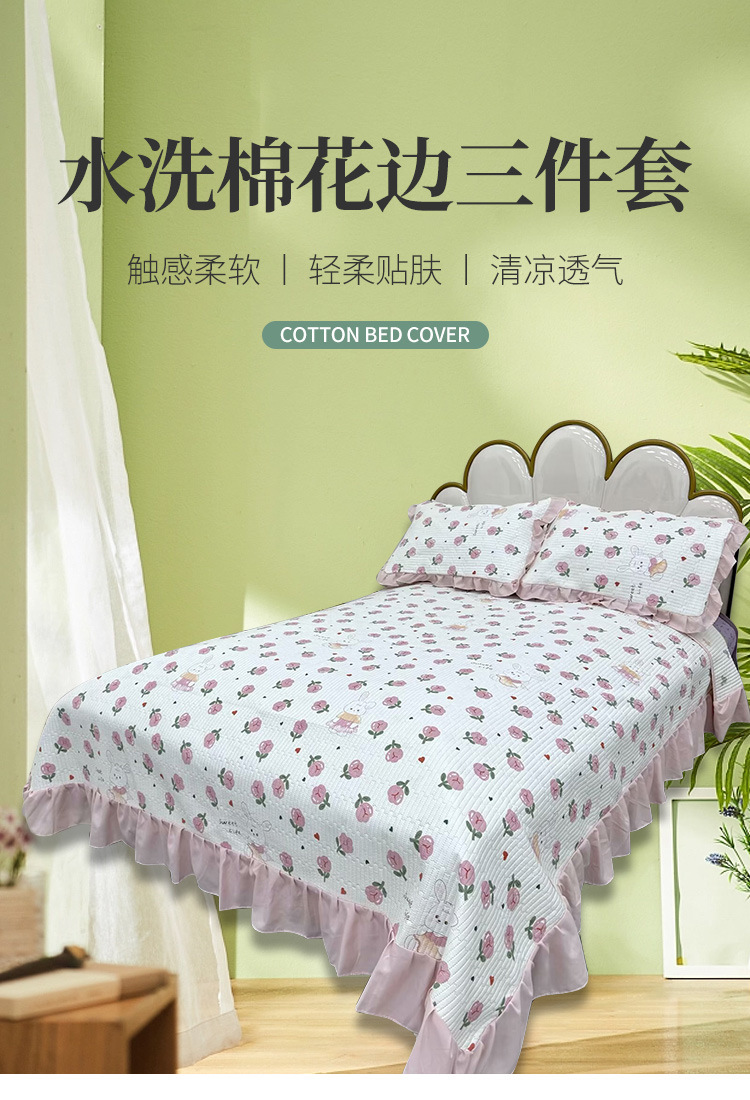 水洗棉花边三件套绗缝床裙双面盖毯榻榻米床单四季通用麻花边床盖