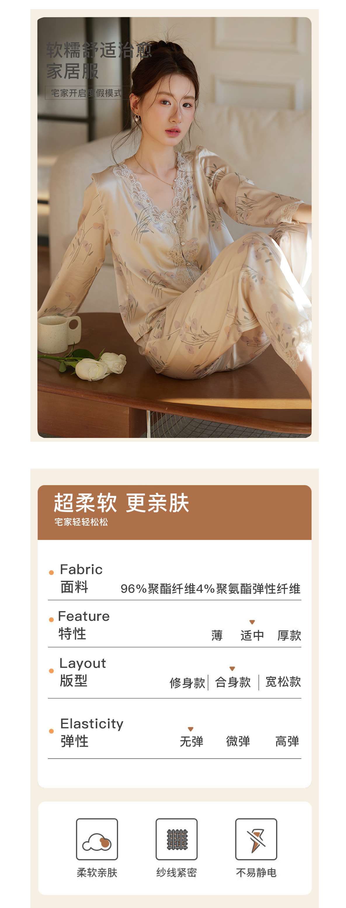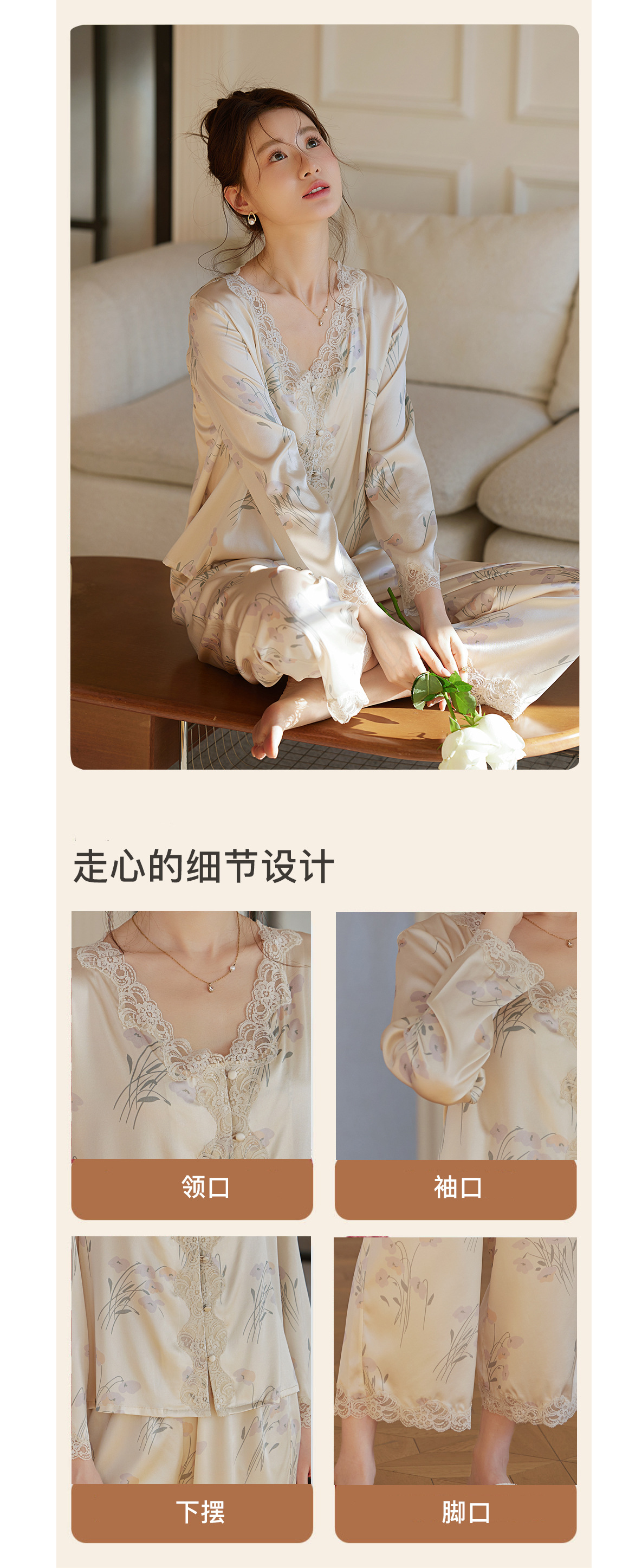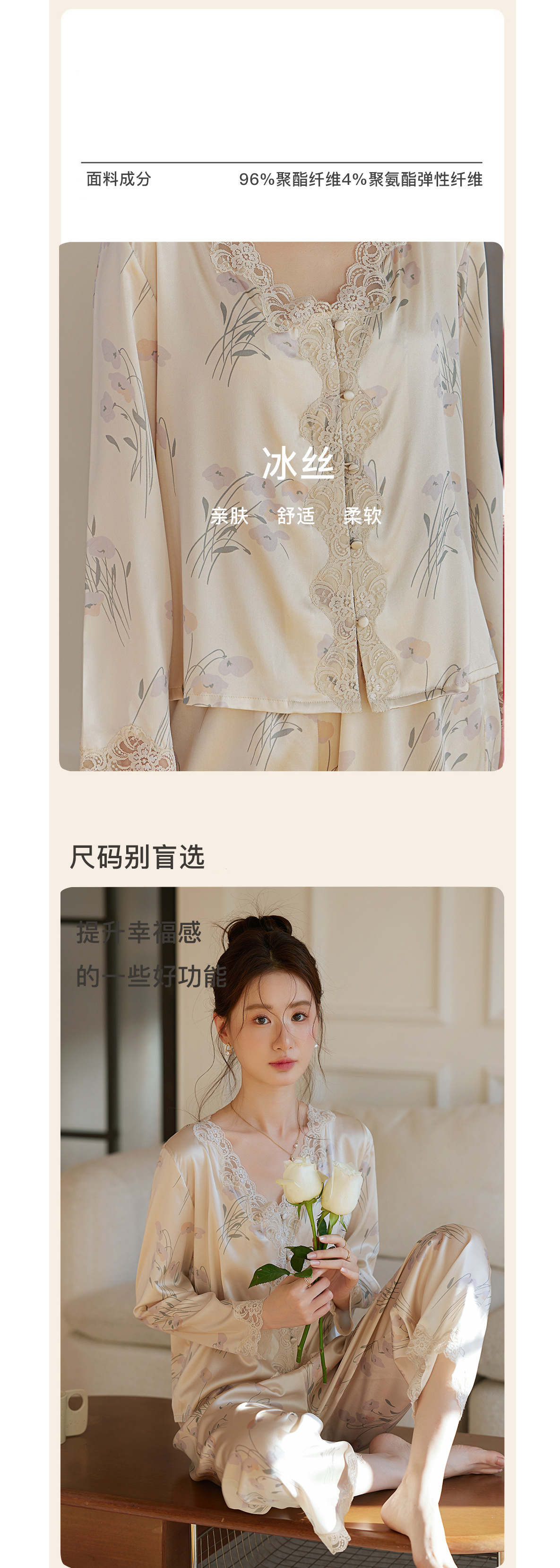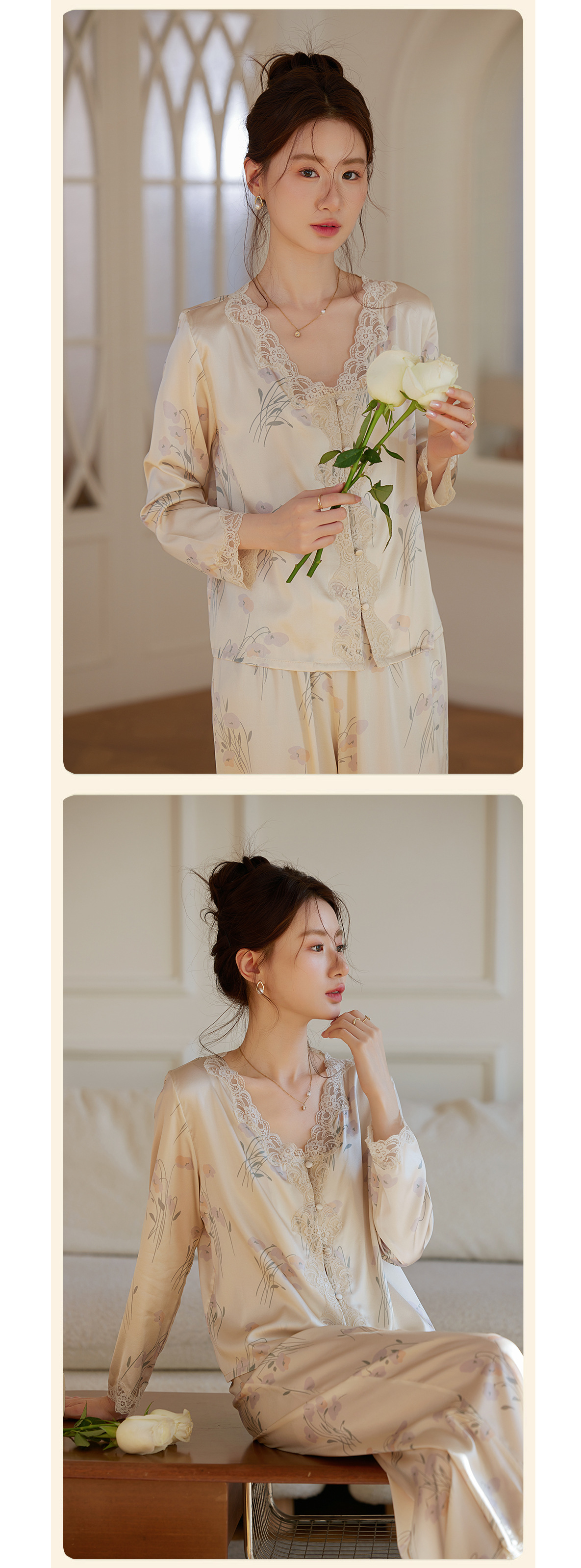 2025 이른 봄 새로운 중국 스타일 가벼운 럭셔리 파자마 여성 봄 국가 스타일 레이스 V-넥 긴 소매 바지
