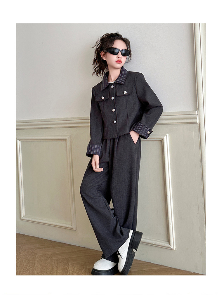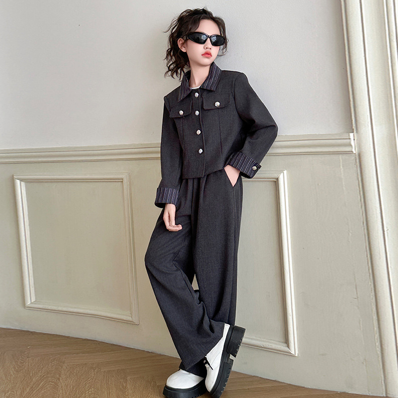 소녀 프렌치 스타일 샤넬 스타일 세트 세트 2025 봄 새 스타일 한국 스타일 스트레이트 다리 바지 2 피스 세트