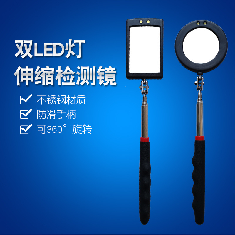 스테인레스 스틸 망원경 시각 검사 거울 이중 LED 조명 사각형 원형 50mm 자동 수리 섀시 검사 거울스토어 가기