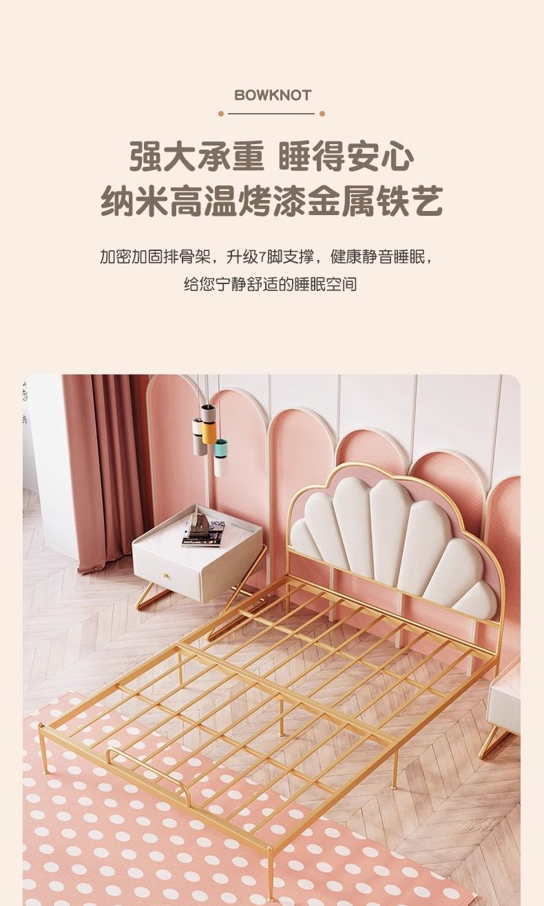 Yf3 노르딕 스타일 어린이 침대 철공 침대 간단한 가구 작은 아파트 침대 침실 소녀 공주 침대 1.2m 싱글 사람스토어 가기