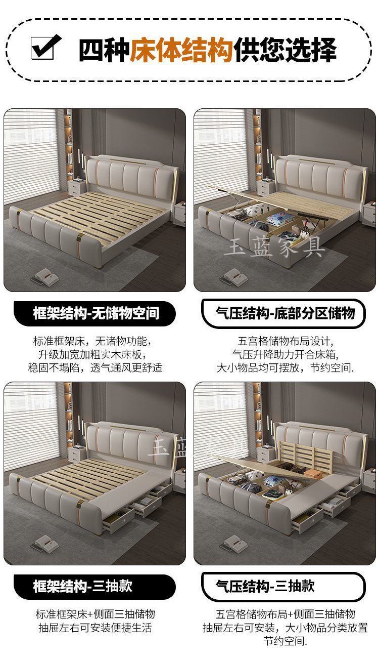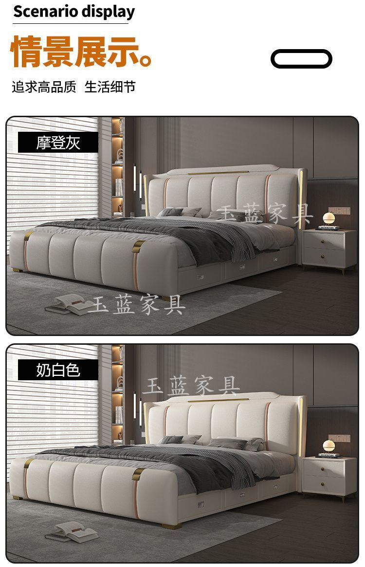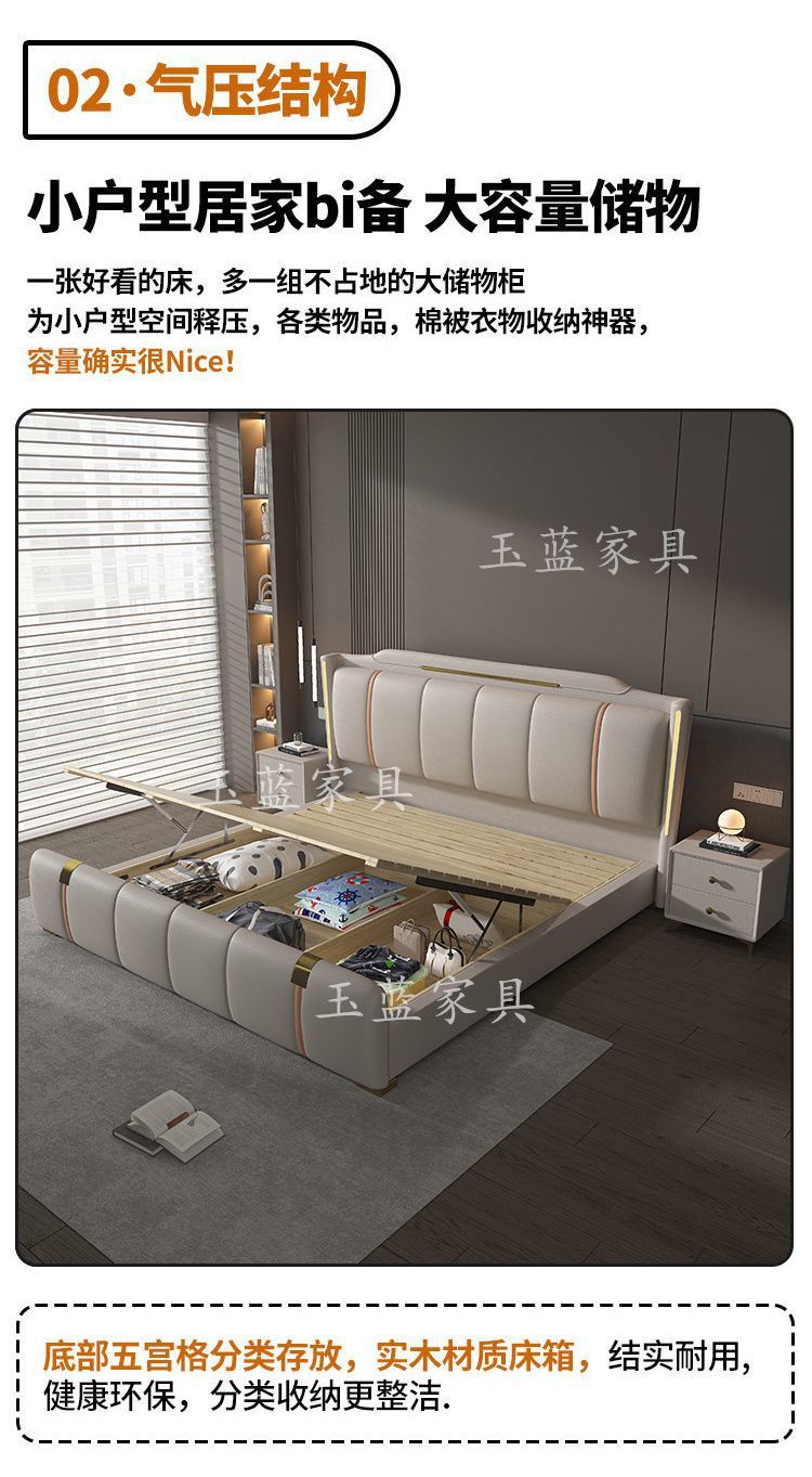 Yf3 [3180 명 컬렉션] 고급 마스터 침실 가죽 침대 1.8 미터 더블 침대 웨딩 침대 높은 상자 스토리지 소프트 포피스토어 가기
