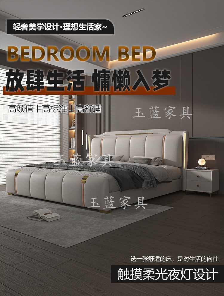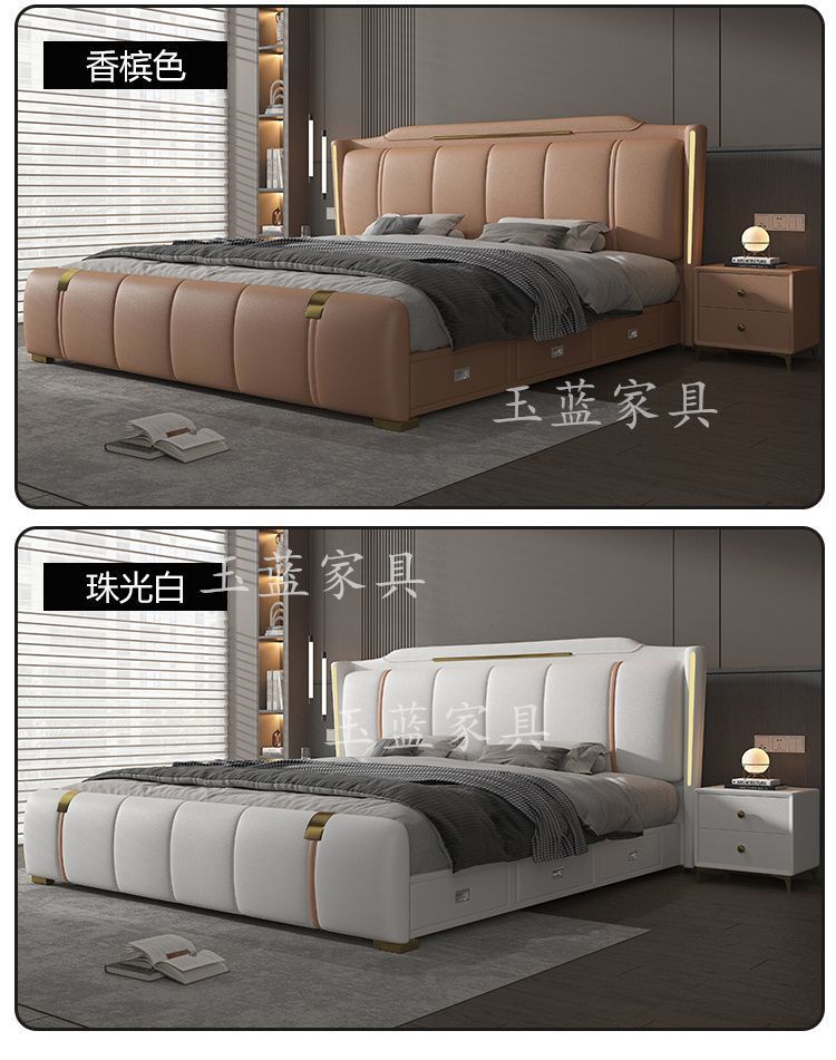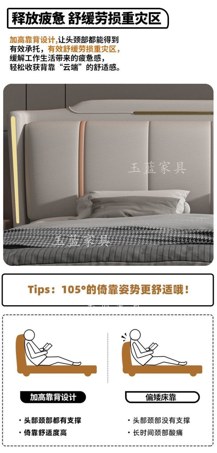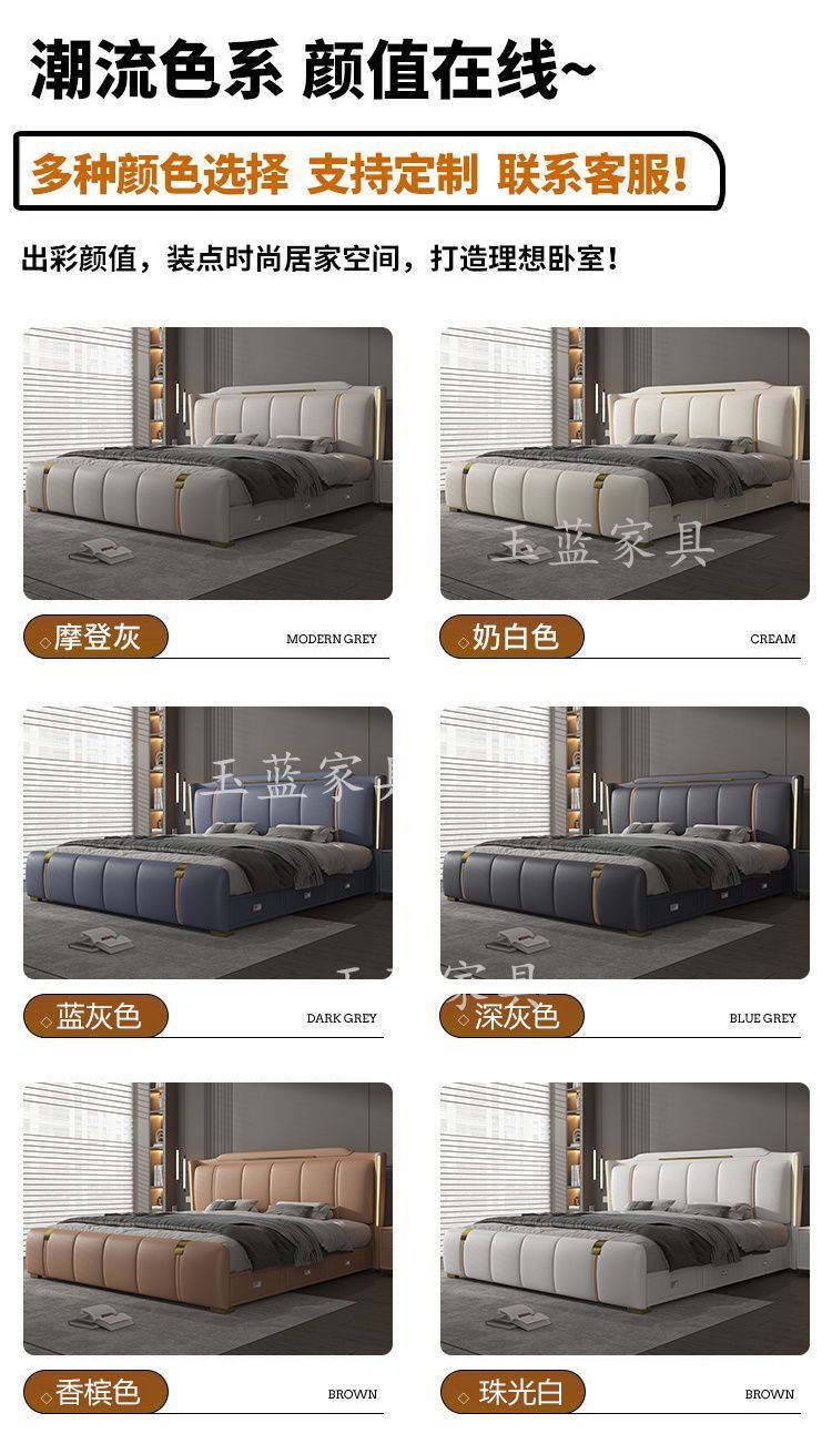 Yf3 [3180 명 컬렉션] 고급 마스터 침실 가죽 침대 1.8 미터 더블 침대 웨딩 침대 높은 상자 스토리지 소프트 포피스토어 가기