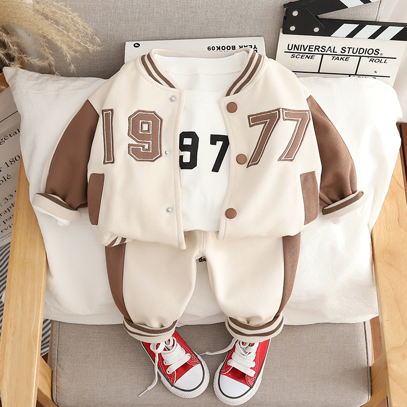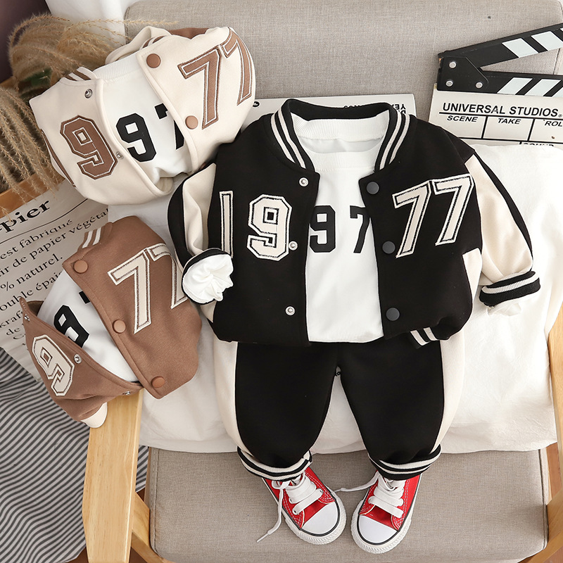 2024 새로운 가을 소년 라운드 넥 야구 유니폼 긴팔 3 피스 세트 아기 소년 스포츠 바지 정장 유행 배송스토어 가기