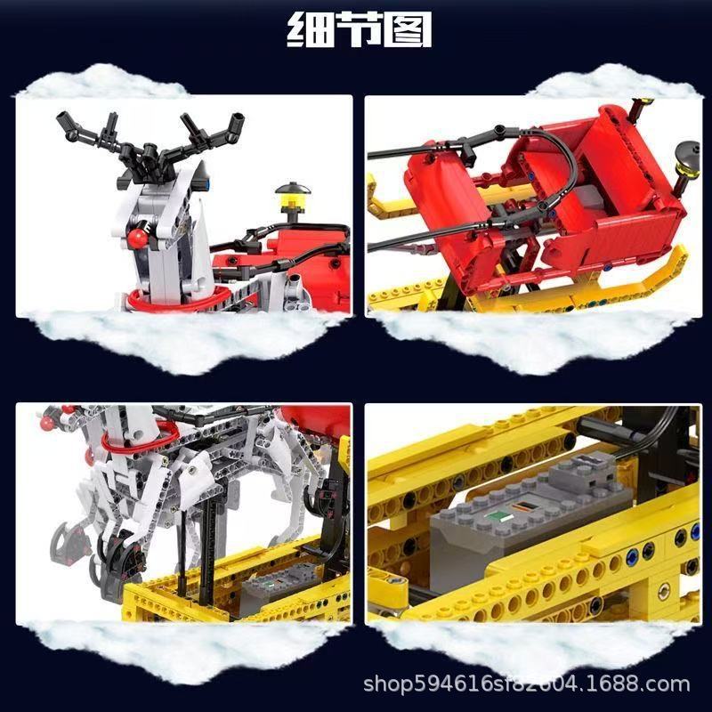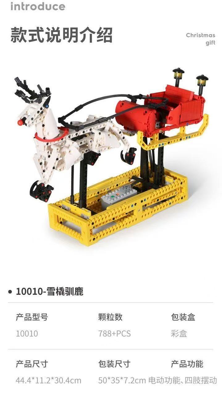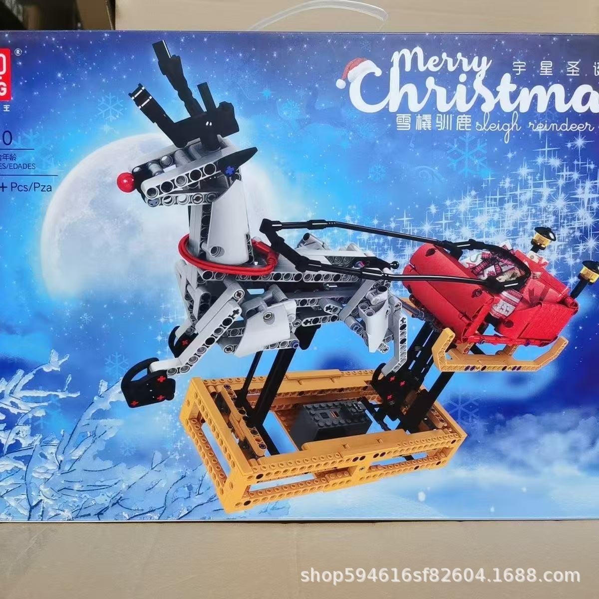 Yuxing 10010 창조적 인 크리스마스 시리즈 썰매 순록 전기 모델 조립 계몽주의 어린이 건물 블록 장난감스토어 가기