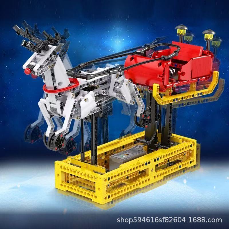 Yuxing 10010 창조적 인 크리스마스 시리즈 썰매 순록 전기 모델 조립 계몽주의 어린이 건물 블록 장난감