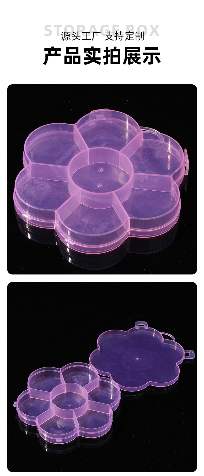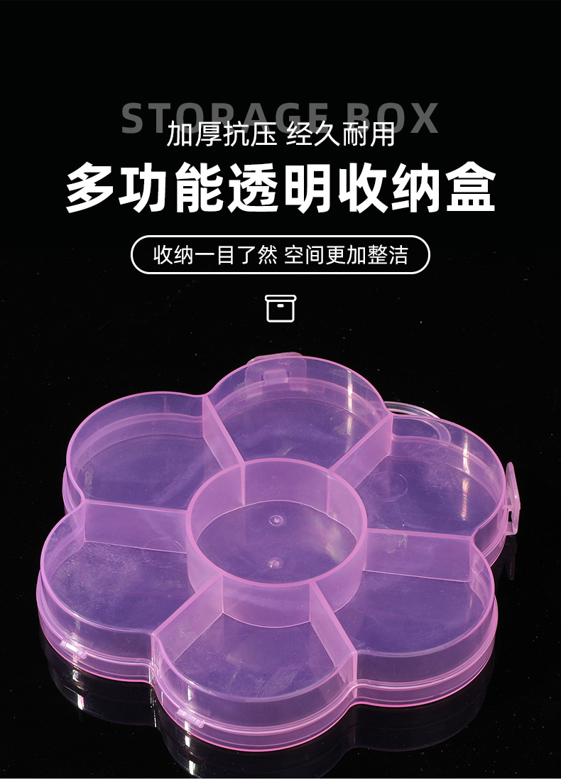 뜨거운 판매 핑크 꽃 분할 저장 상자 투명 PP 플라스틱 어린이 DIY 액세서리 비즈 투명 저장 상자스토어 가기