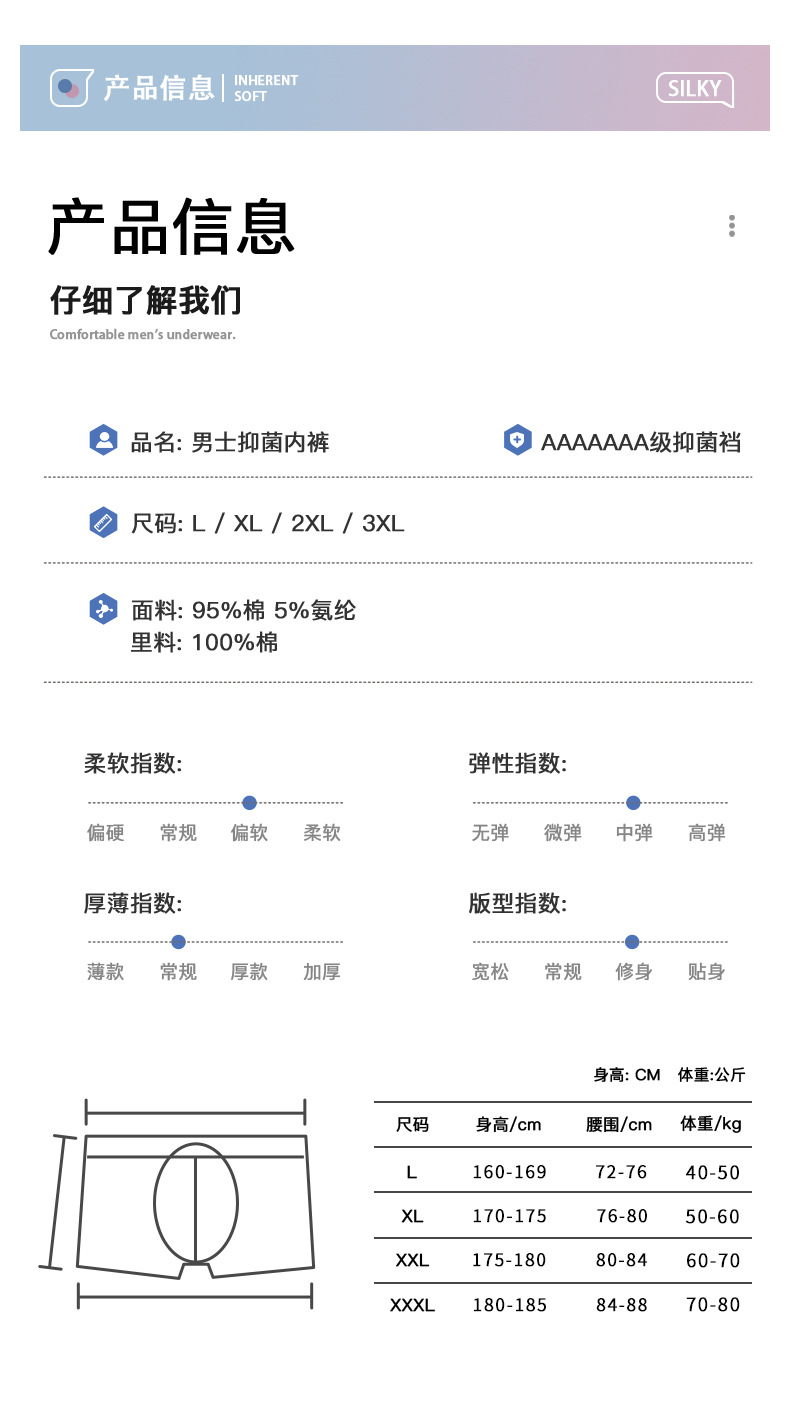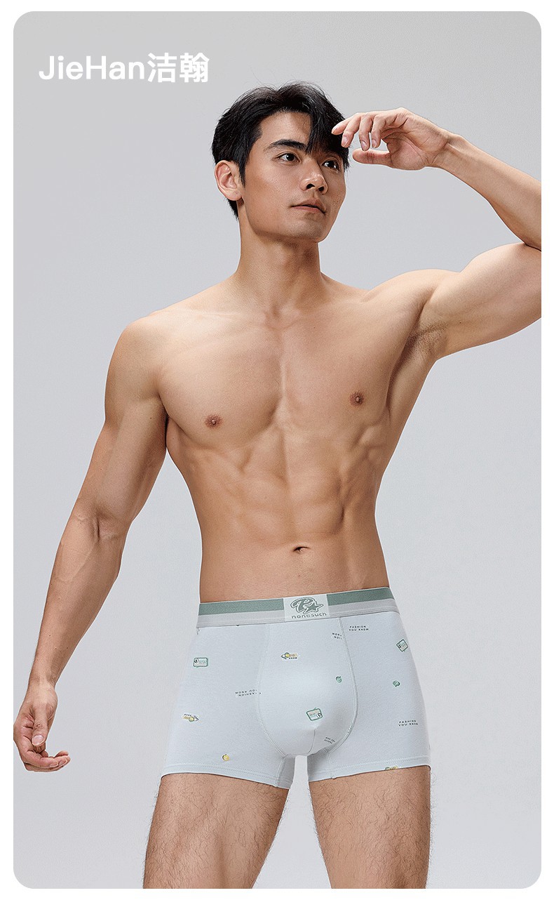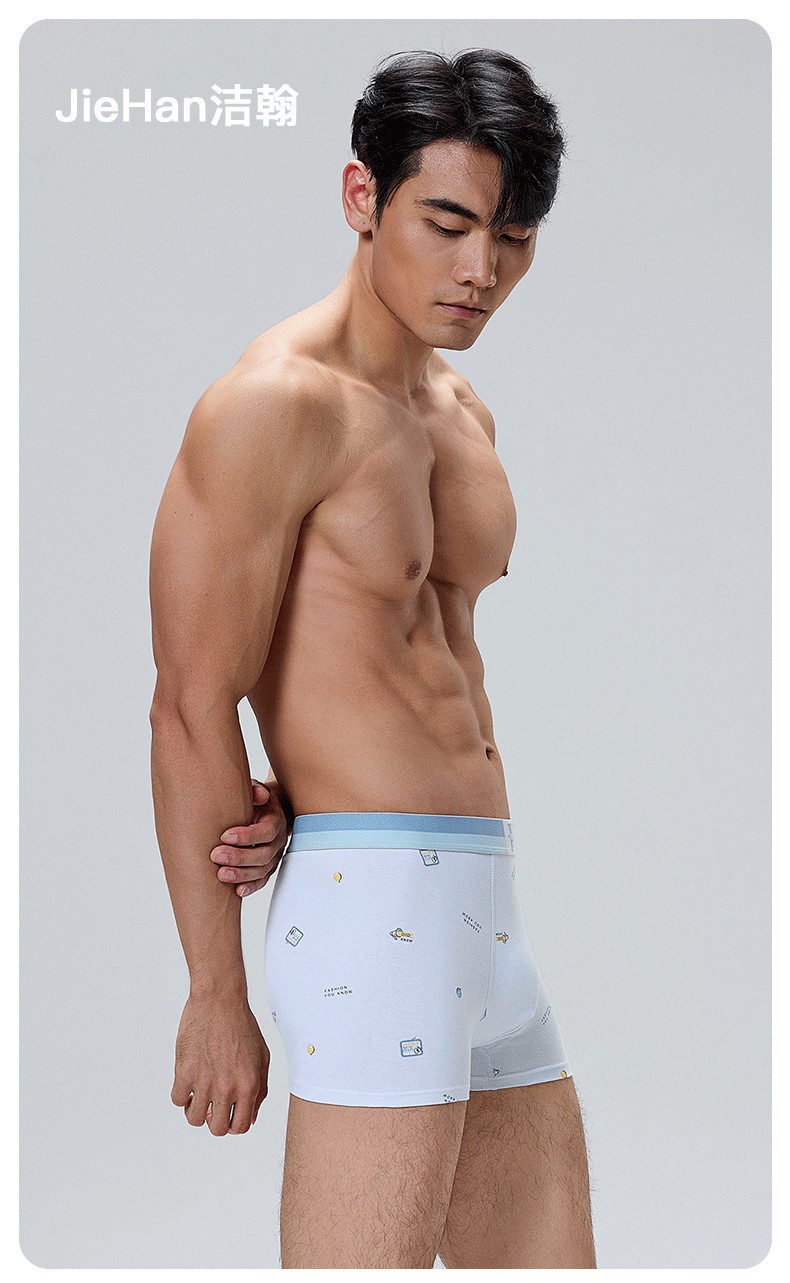 Jiehan 순면 사각팬티 남성용 청소년 항균 사각팬티 면 7A 항균 가랑이 사각팬티 심플스토어 가기