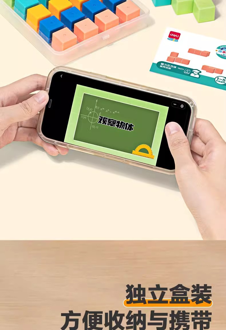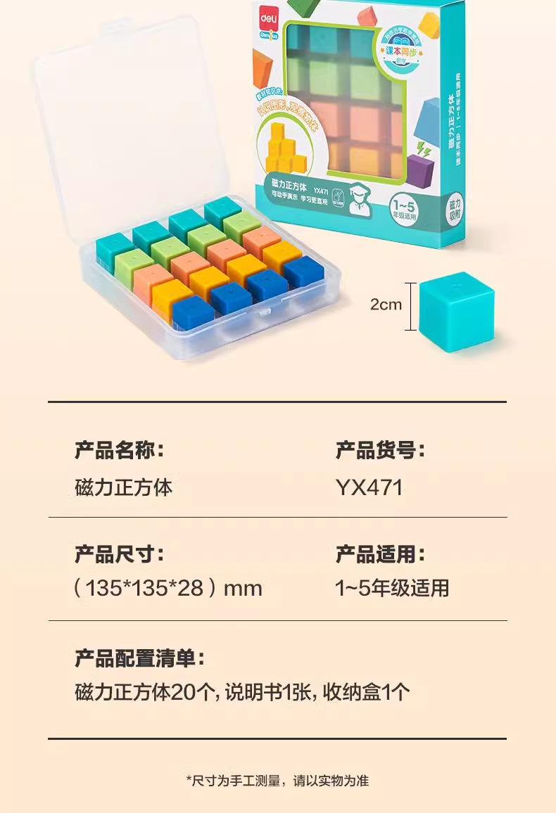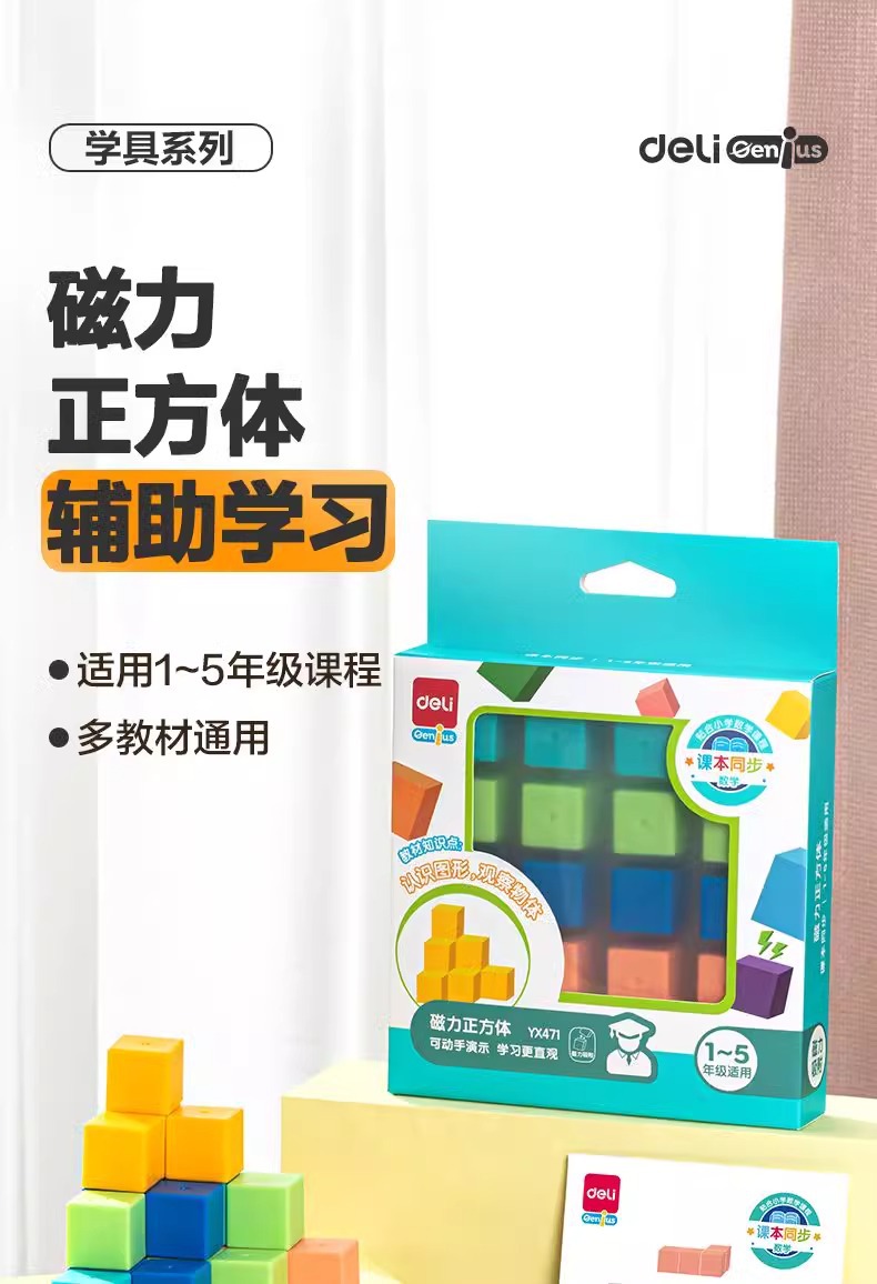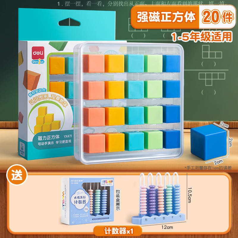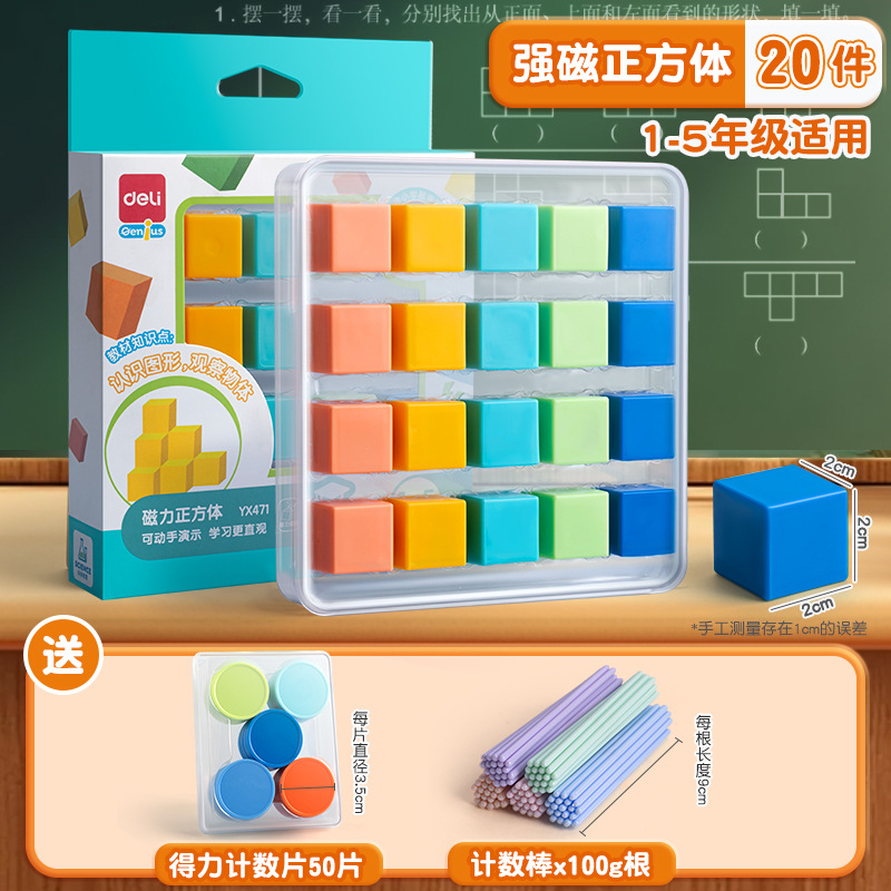 델리 YX471 자기 큐브 자기 고체 기하학 모델 초등학교 수학 어린이 빌딩 블록 cuboid스토어 가기