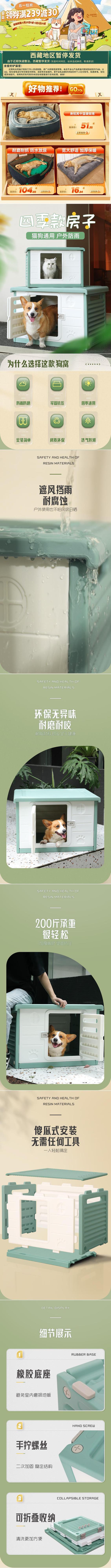 • [장난감 + 20kg 내부 도어] 자외선 차단 및 방수 애완동물 둥지 - 녹색