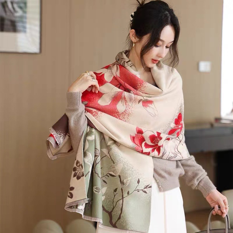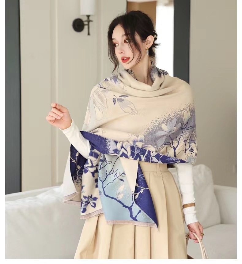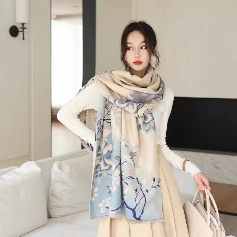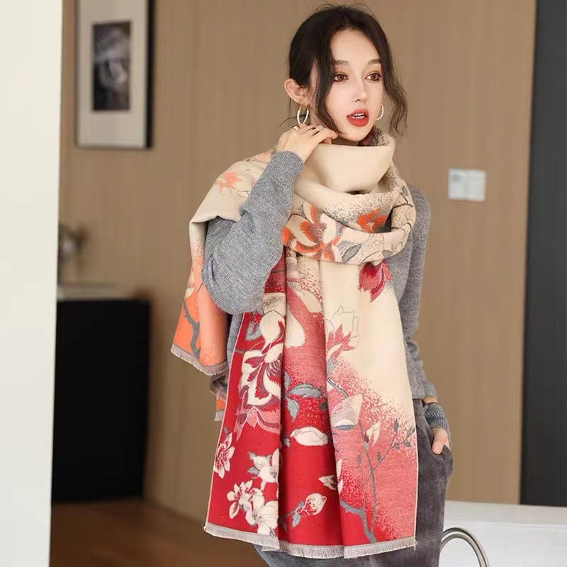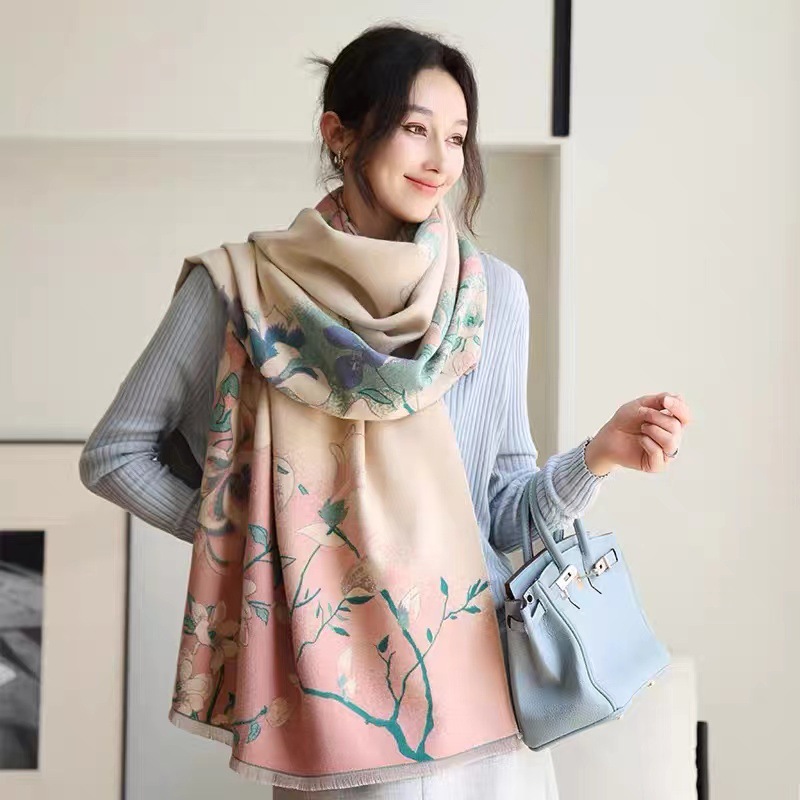 Qingshui Yulan 스카프 여성의 겨울 양면 긴 모조 캐시미어 봄과 가을 패션 두꺼운 에어컨 룸 대형 목도리 이중 사용