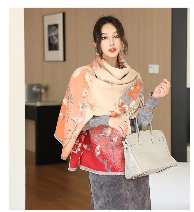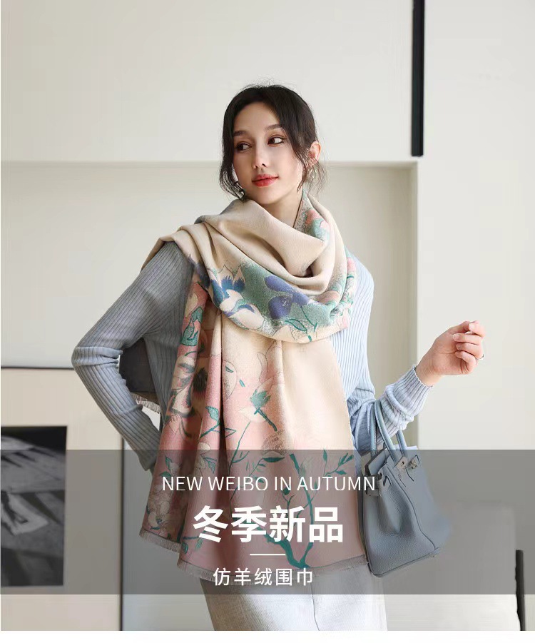 Qingshui Yulan 스카프 여성의 겨울 양면 긴 모조 캐시미어 봄과 가을 패션 두꺼운 에어컨 룸 대형 목도리 이중 사용스토어 가기