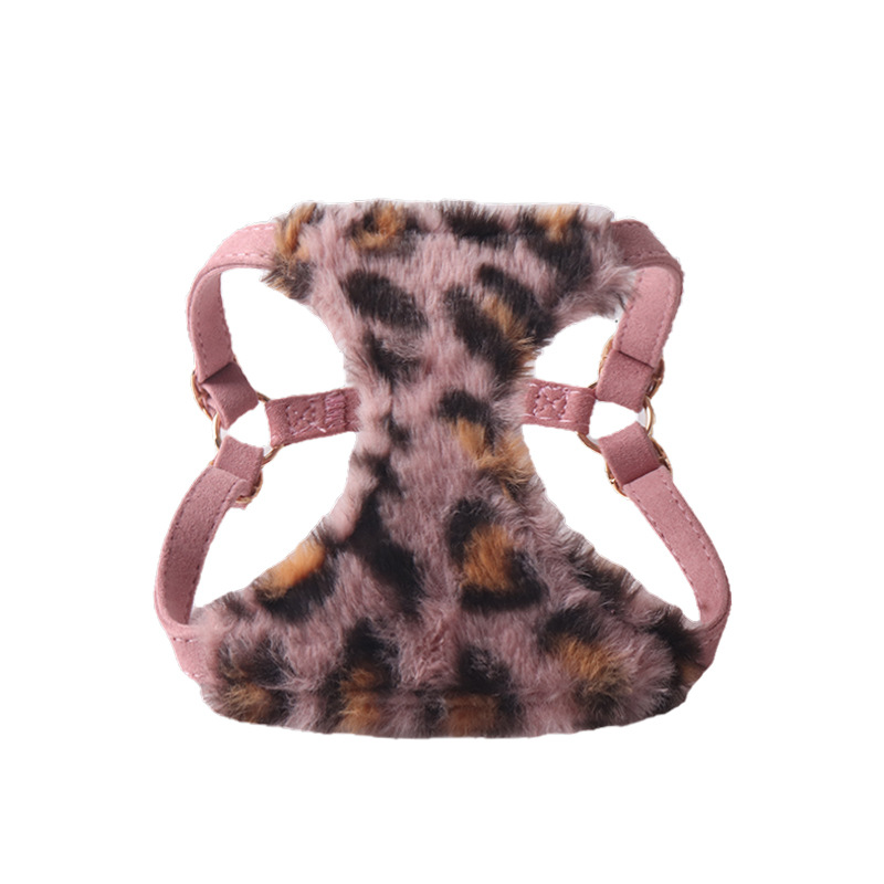 Aminger 새로운 애완 동물 목걸이 모방 토끼 모피 레오파드 무늬 가슴 스트랩 더블 훅 견인 로프 세트스토어 가기