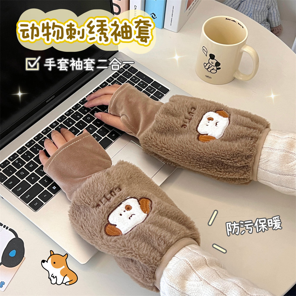 袖套手套二合一秋冬季毛绒卡通保暖套袖耐脏耐用少女防寒护袖批发스토어 가기