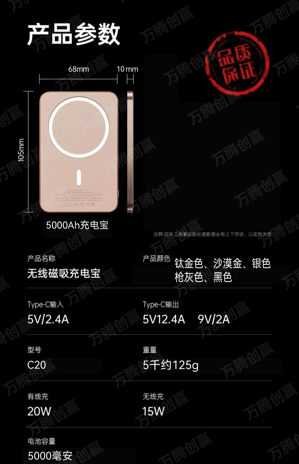 브래킷 자기 충전 보물 MagSafe 무선 고속 충전 대용량 모바일 전원 휴대용 소형 20W 합금