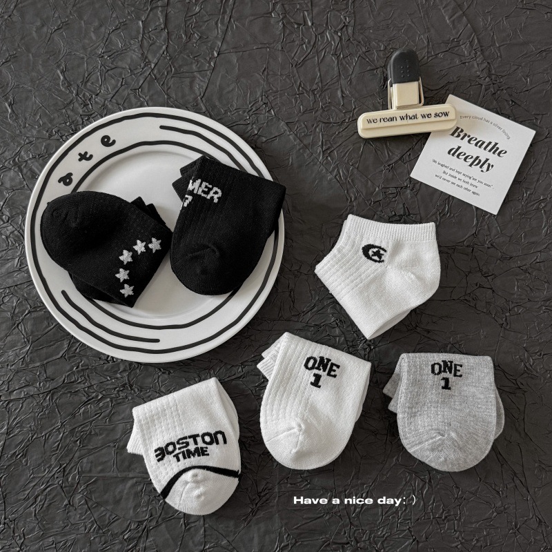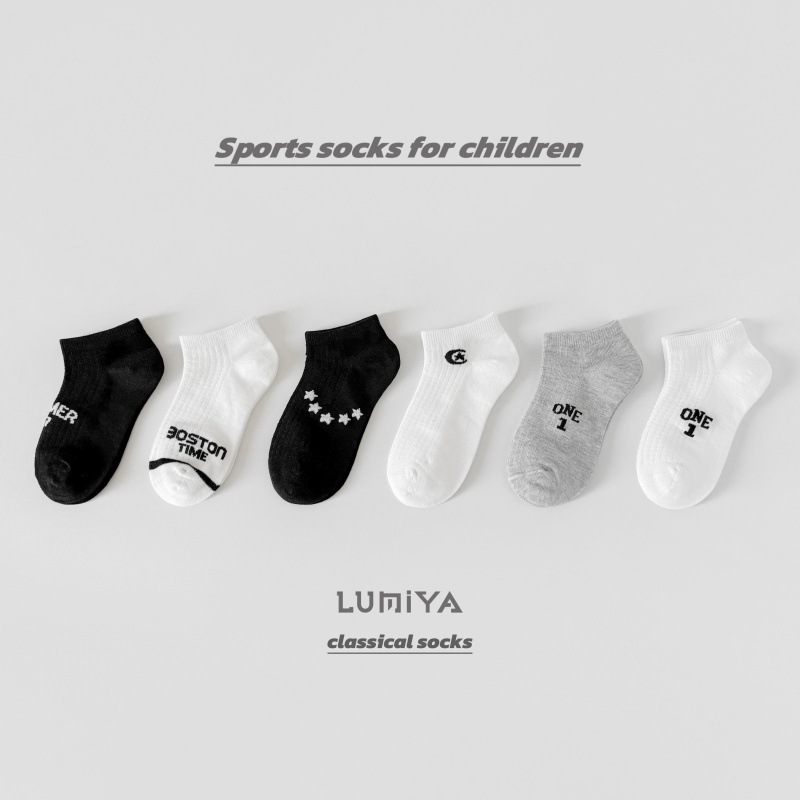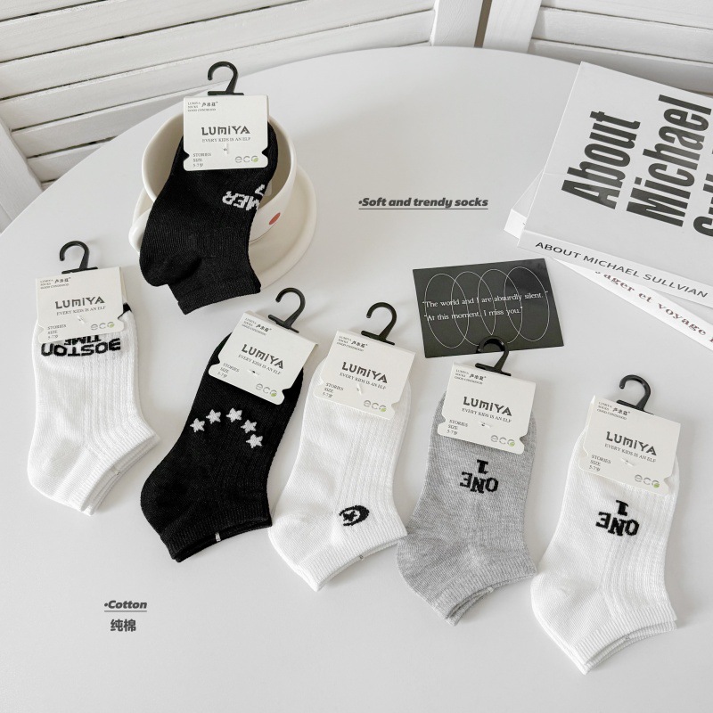 루미아 어린이 양말 2025 소년 소녀 아기 봄과 여름 어린이 양말 짧은 튜브 양말 조수 브랜드 편지 만화 스타킹