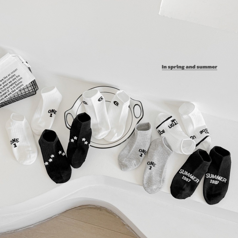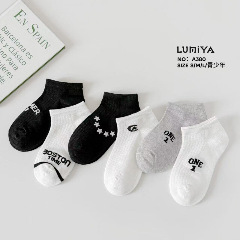 루미아 어린이 양말 2025 소년 소녀 아기 봄과 여름 어린이 양말 짧은 튜브 양말 조수 브랜드 편지 만화 스타킹스토어 가기