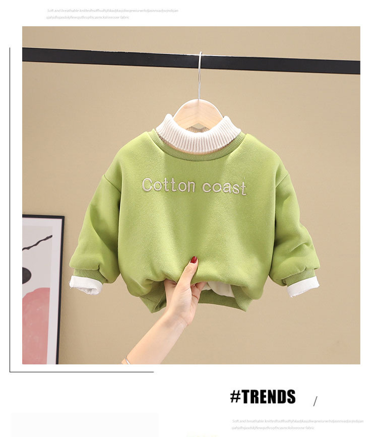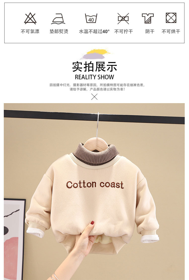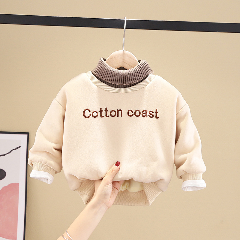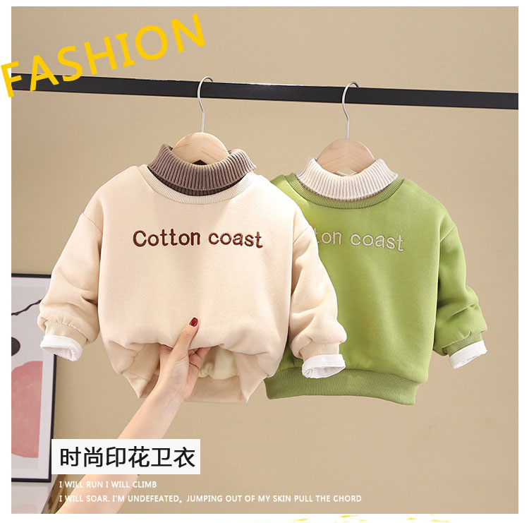 소년 운동복 가을, 겨울 벨벳 터틀넥 긴팔 유행 베이비 탑 아동 풀오버 2024 새로운 스타일 소녀 캐주얼스토어 가기