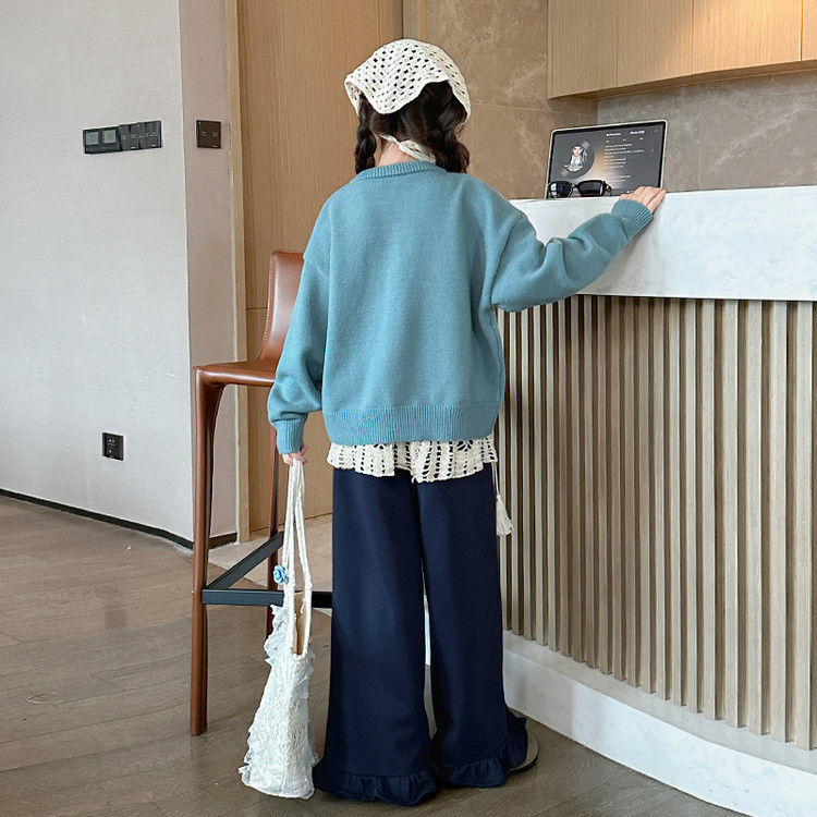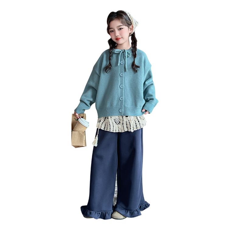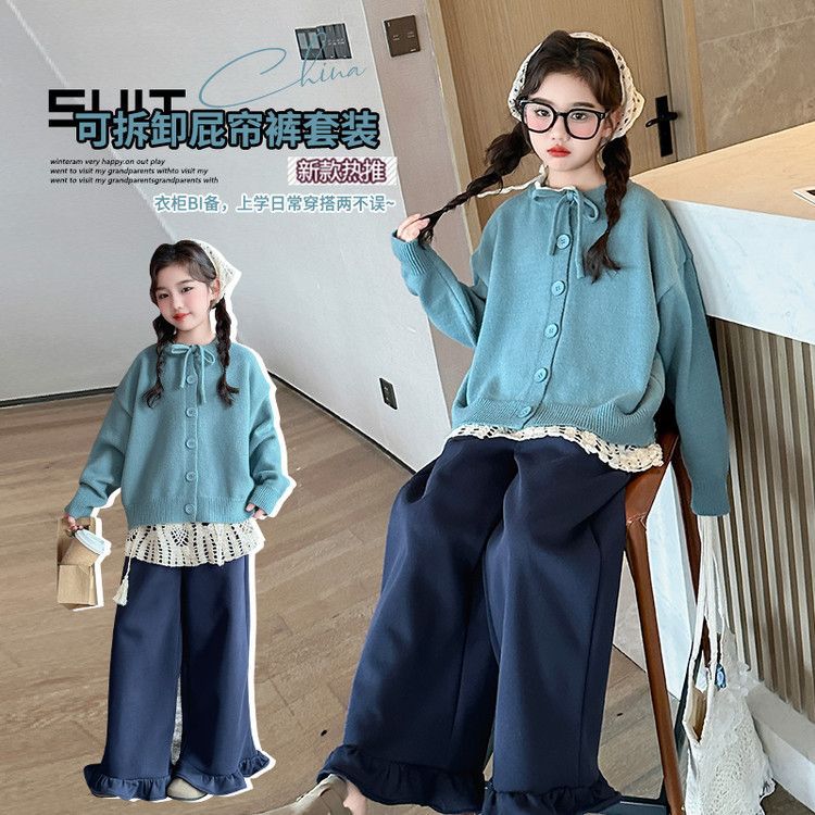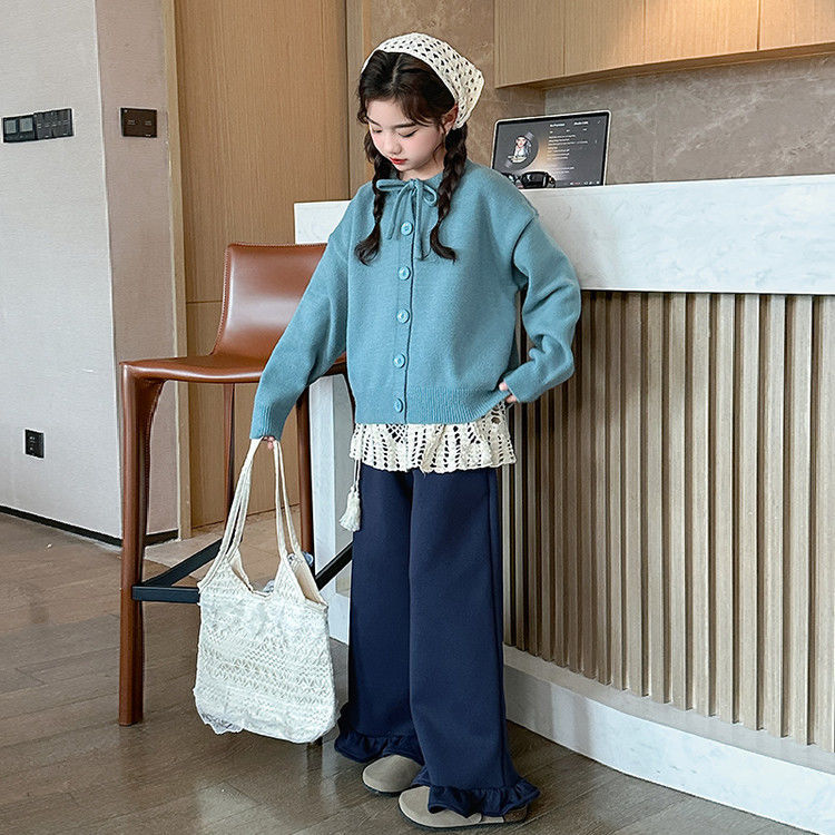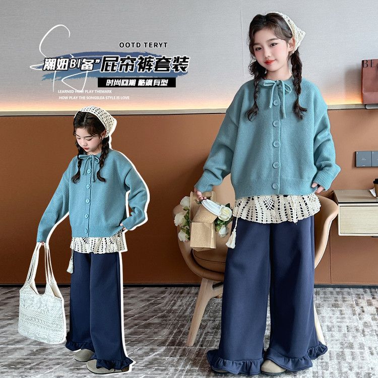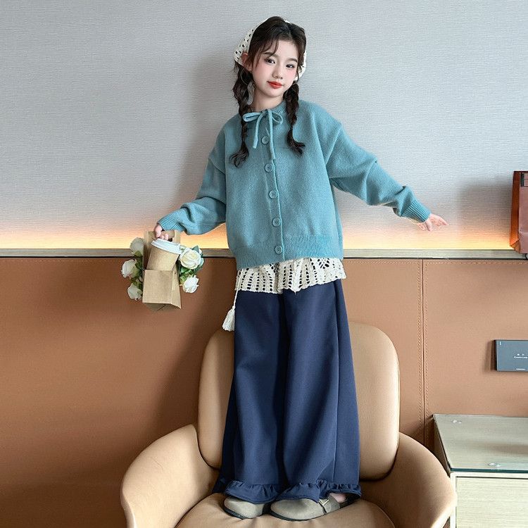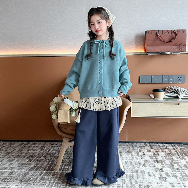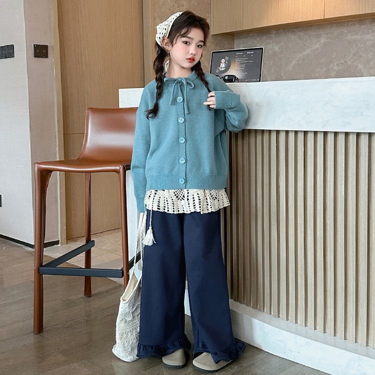 여자 스웨터 바지 3 피스 세트 2025 봄 새로운 부드러운 탑 니트 카디건 스웨터 코트 여성의 봄과 가을