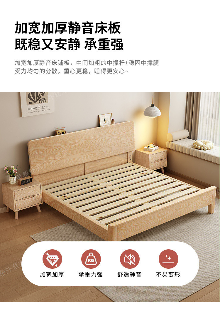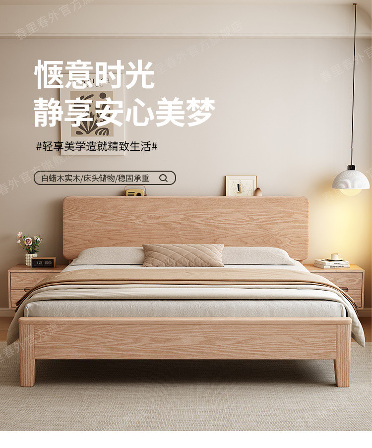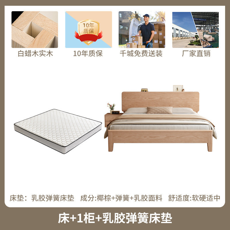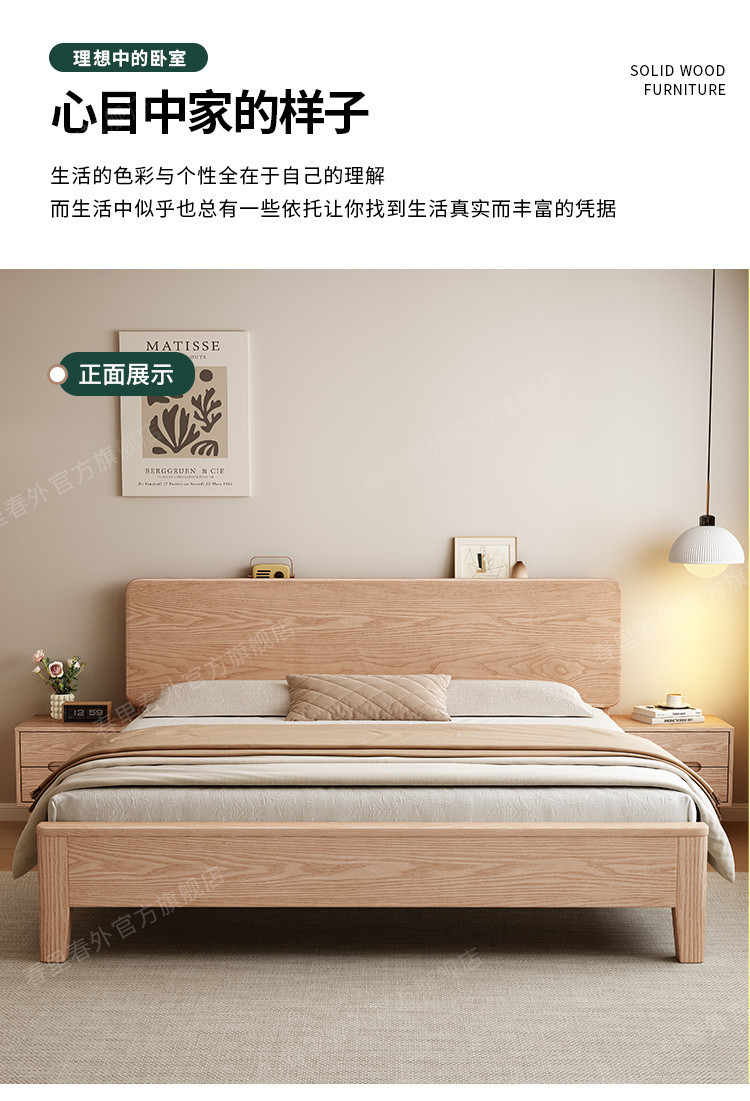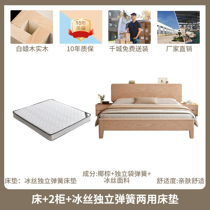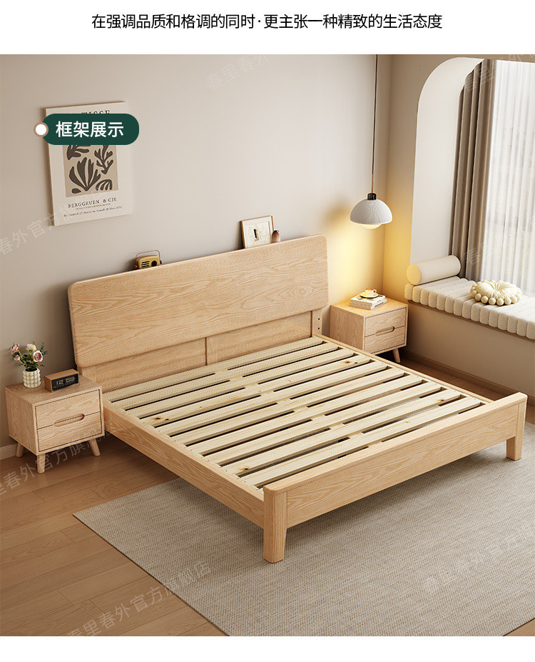 Yf3 북유럽 재 단단한 나무 침대 현대 간단한 1.8x2 m 더블 퀸 침대 마스터 침실 1.5 m 가구 빛스토어 가기