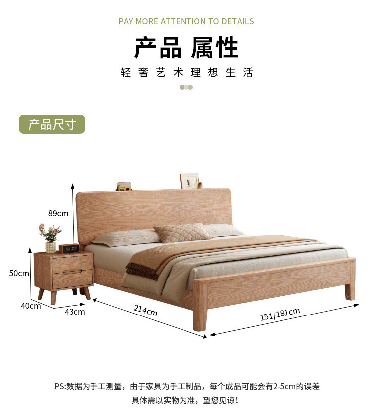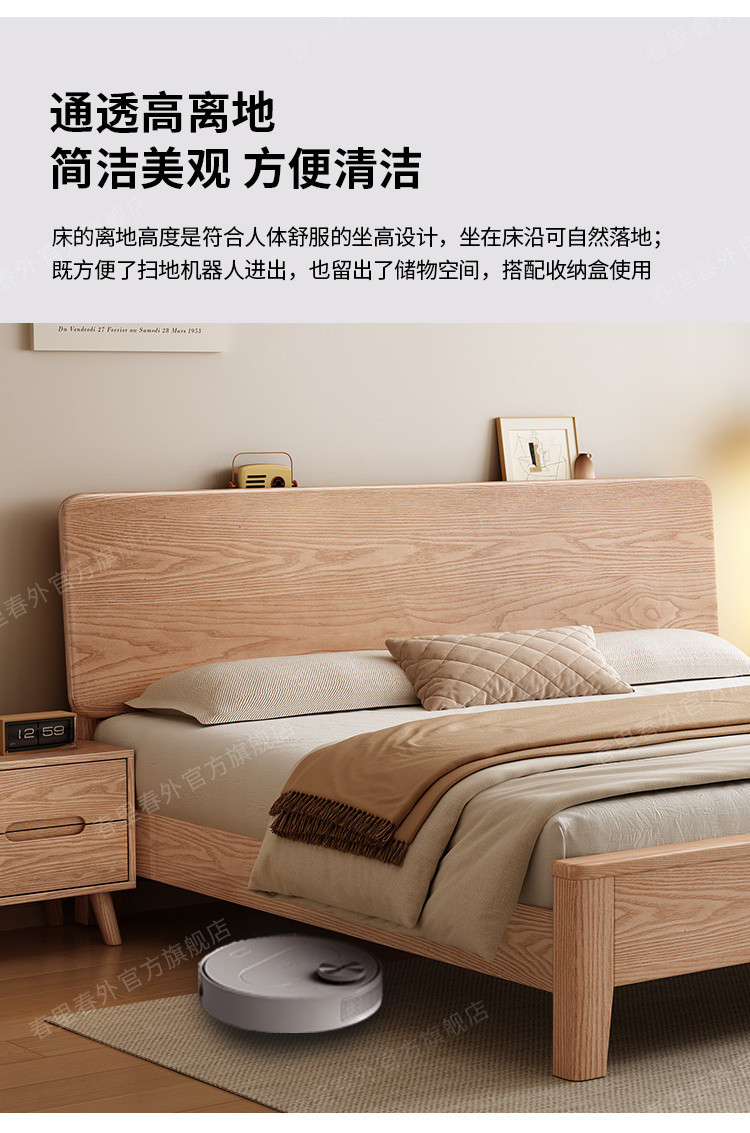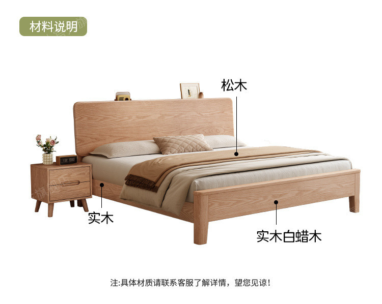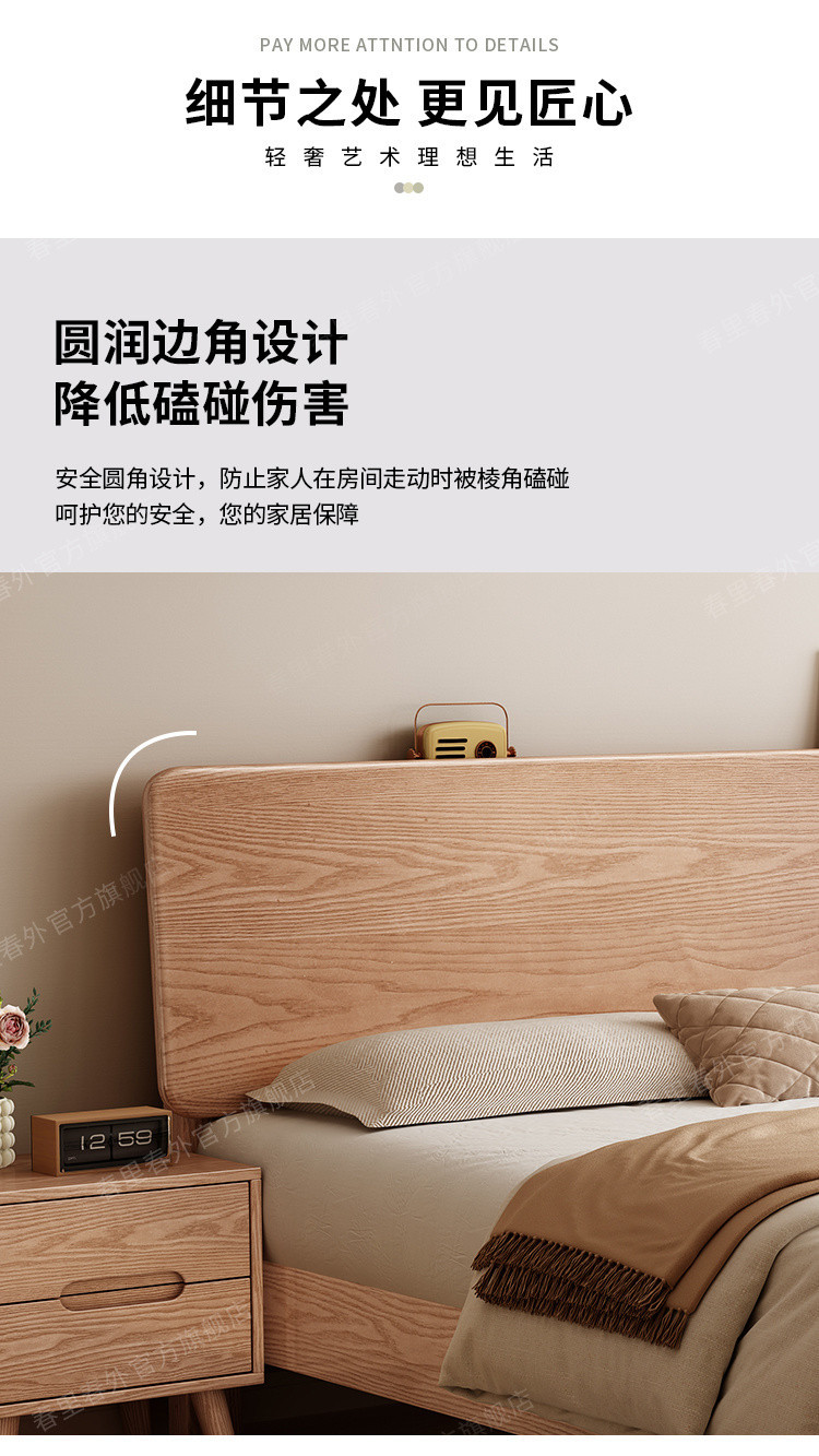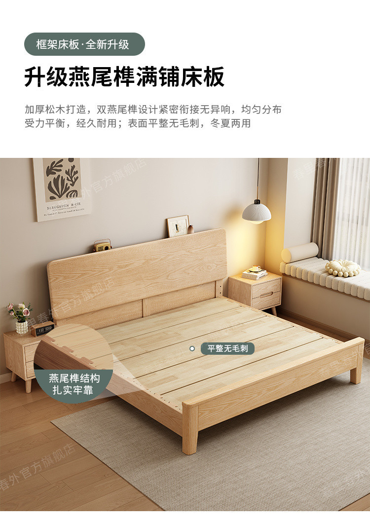 Yf3 북유럽 재 단단한 나무 침대 현대 간단한 1.8x2 m 더블 퀸 침대 마스터 침실 1.5 m 가구 빛스토어 가기