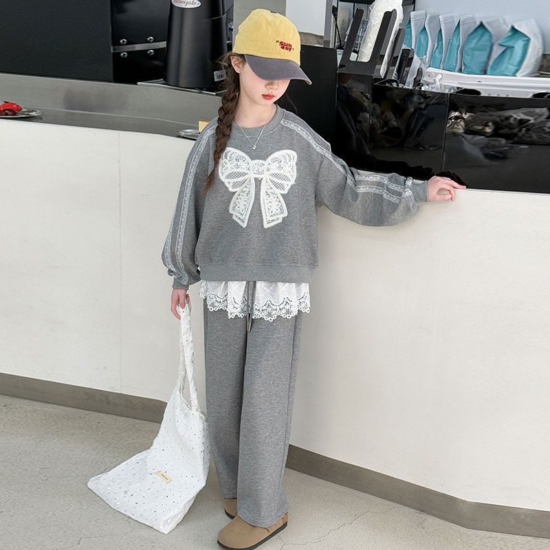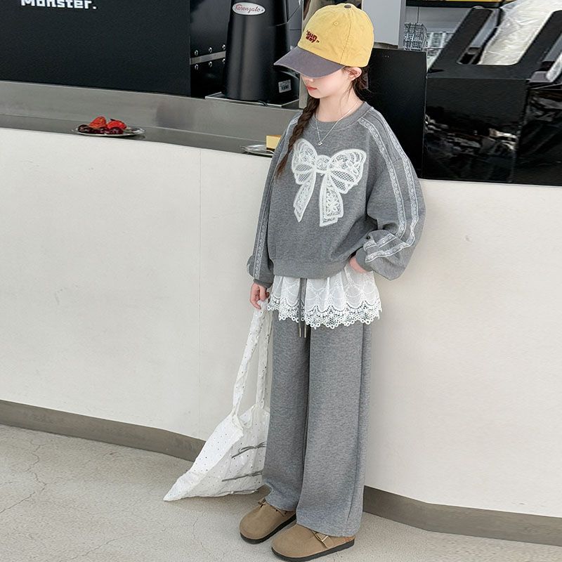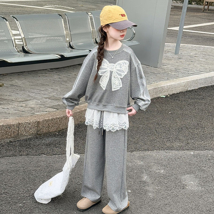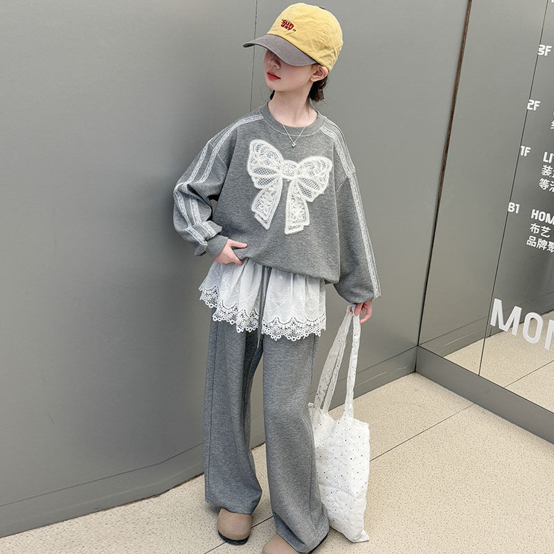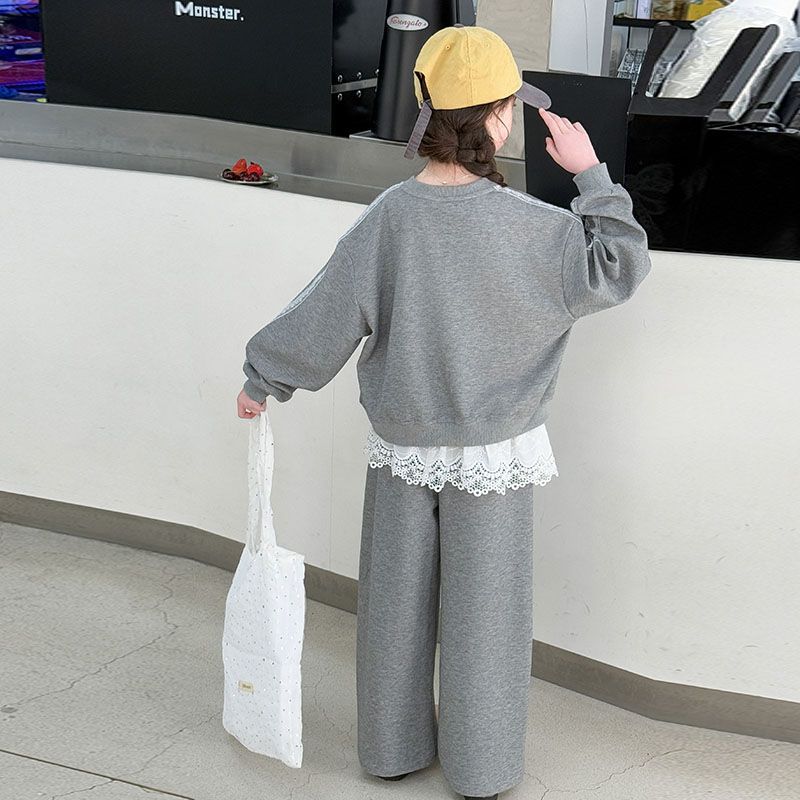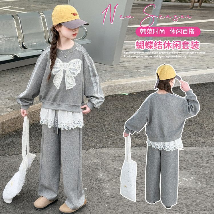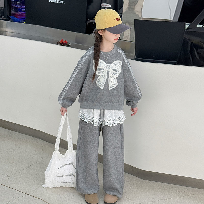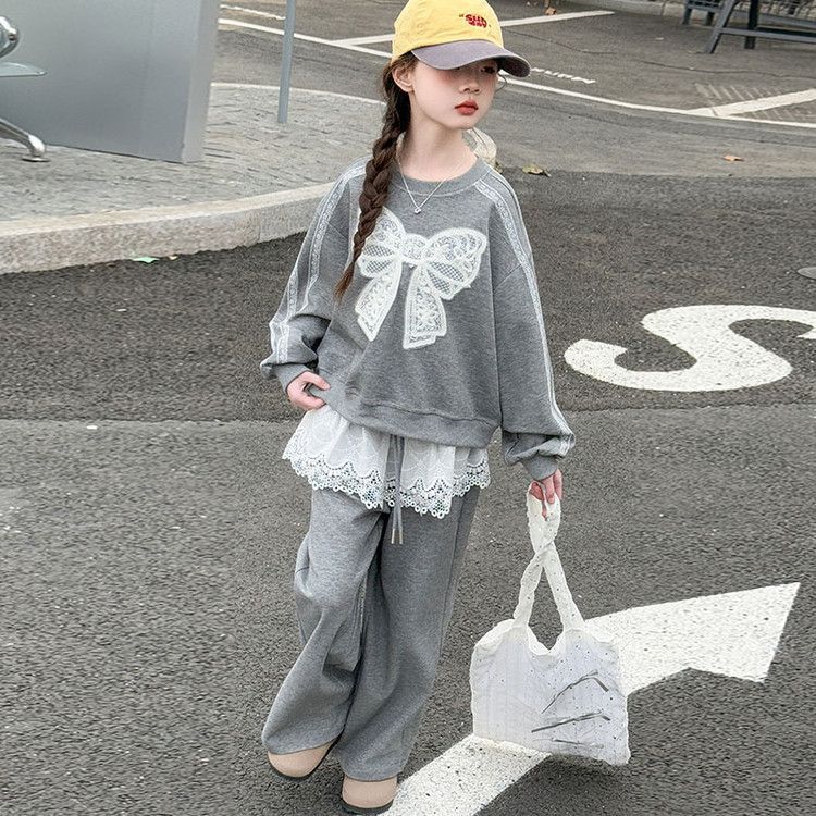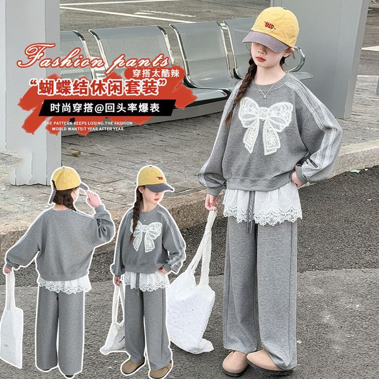 소녀 가을 스웨터 세트 2025 새로운 캐주얼 서양식 활 어린이 레이스 배치 커튼 스웨터 투피스 세트스토어 가기