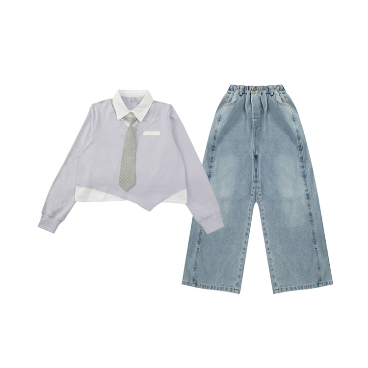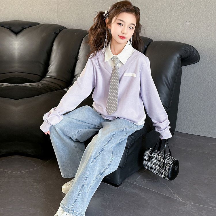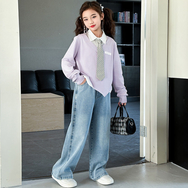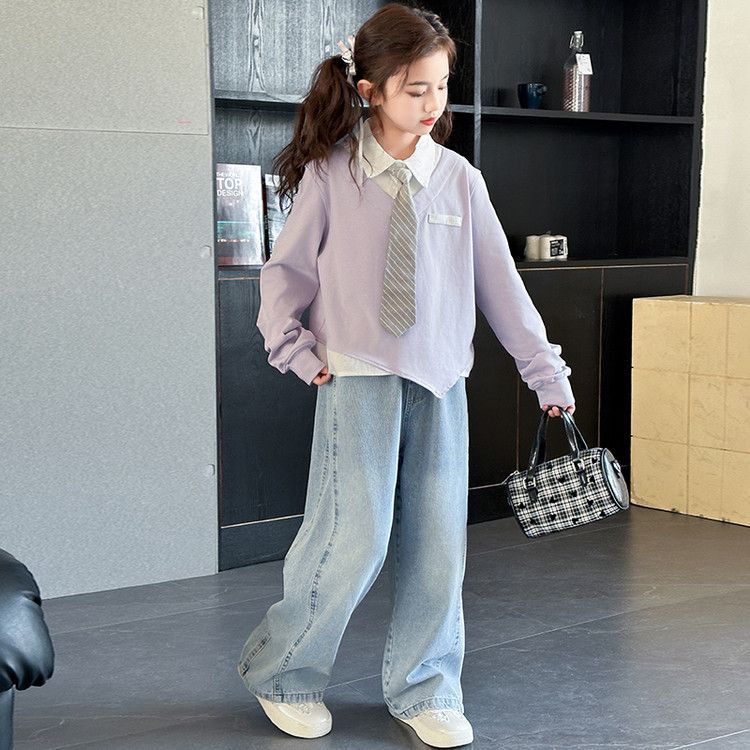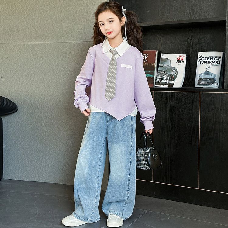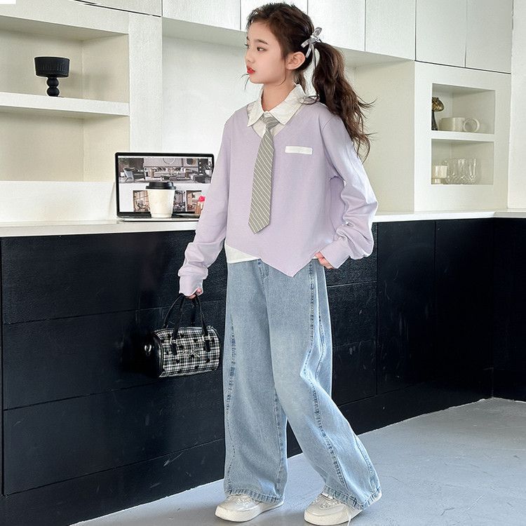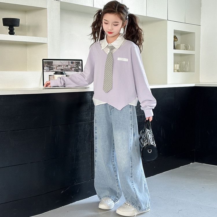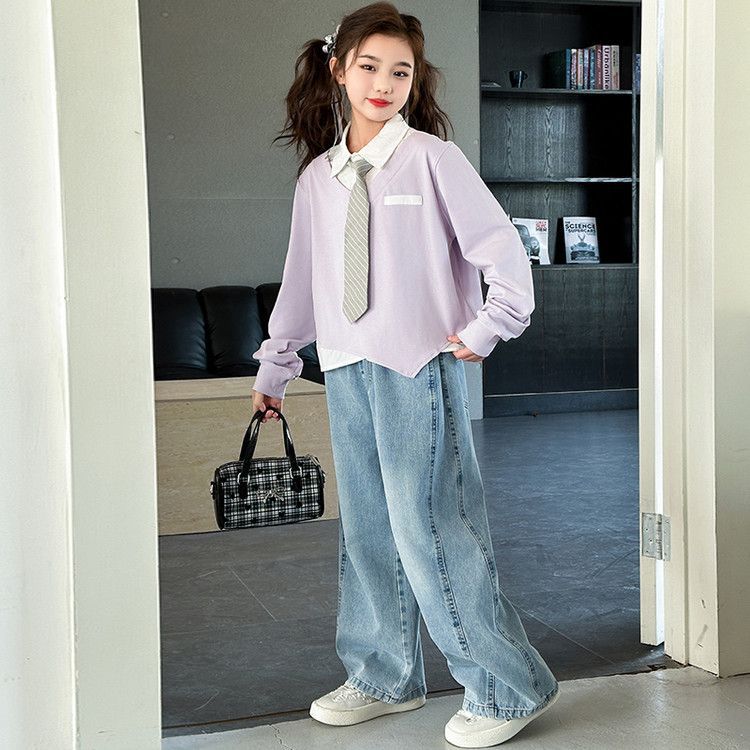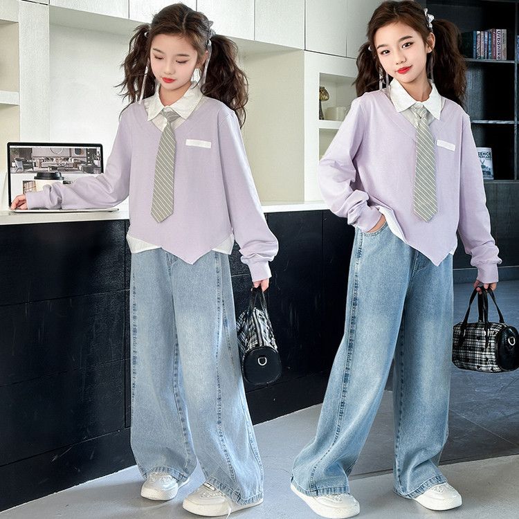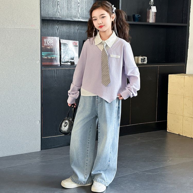 소녀의 봄 2025 새로운 스타일 유행 큰 어린이 대학 스타일 세트 어린이 봄과 가을 스타일 소녀의 세련된 쿨웨어스토어 가기