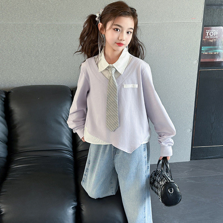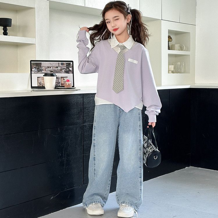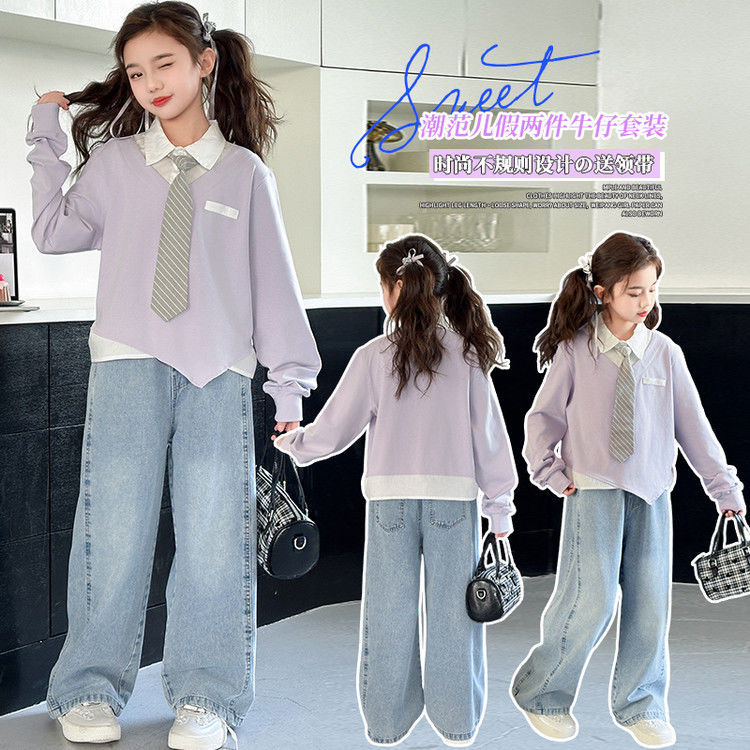 소녀의 봄 2025 새로운 스타일 유행 큰 어린이 대학 스타일 세트 어린이 봄과 가을 스타일 소녀의 세련된 쿨웨어