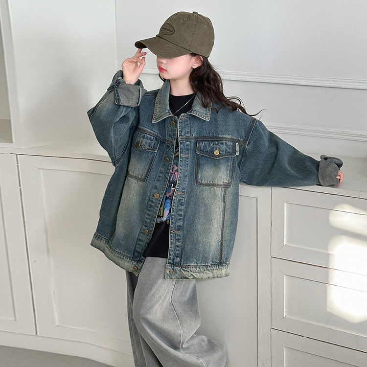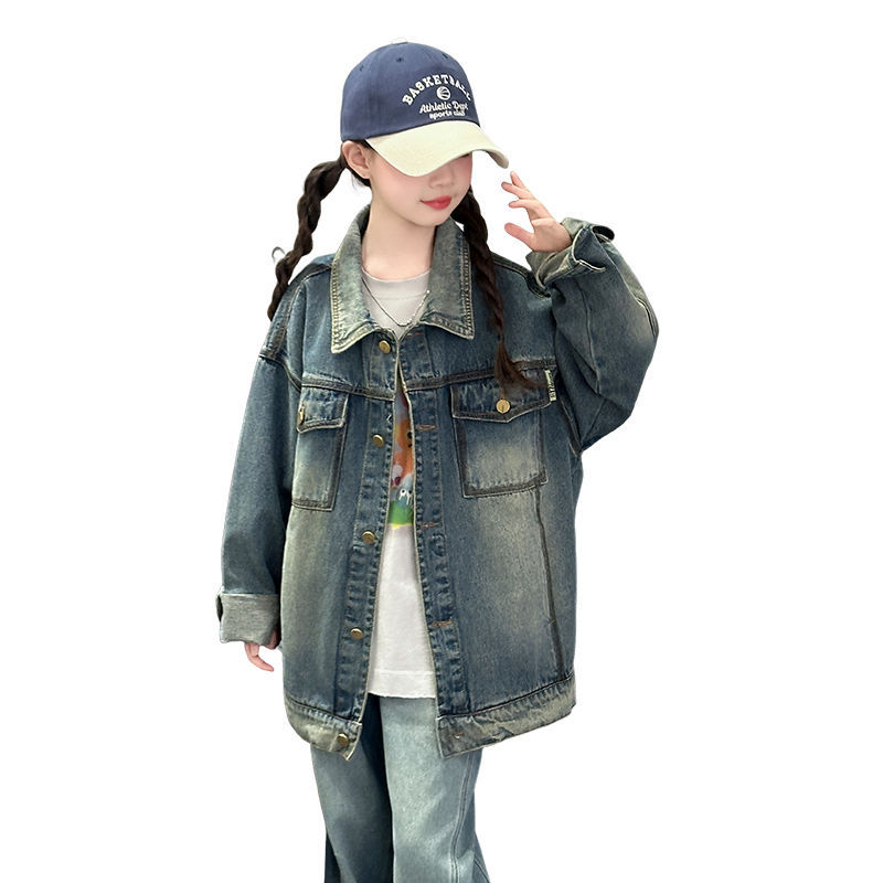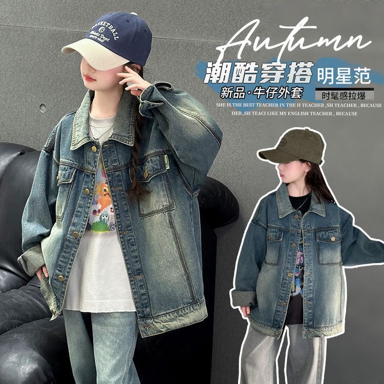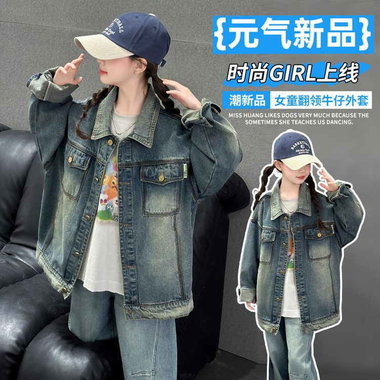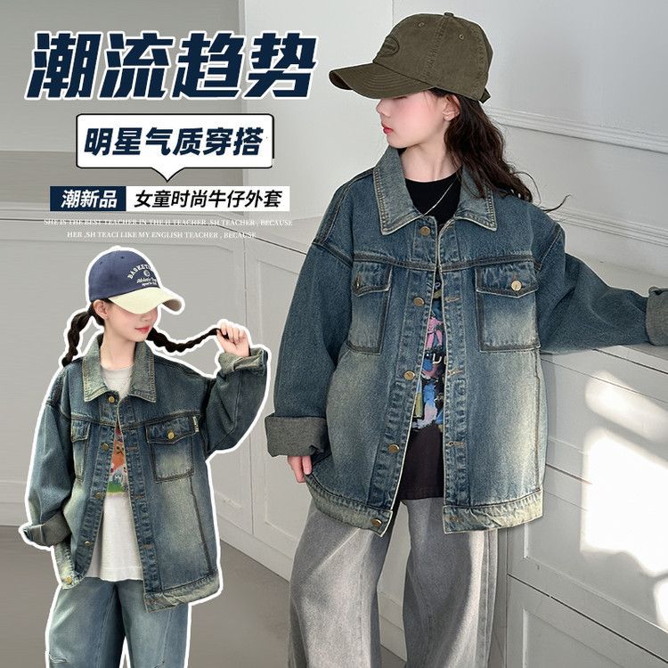 소녀 청바지 코트 봄과 가을 2025 새로운 소녀 패션 복고풍 재킷 어린이 봄 세트스토어 가기