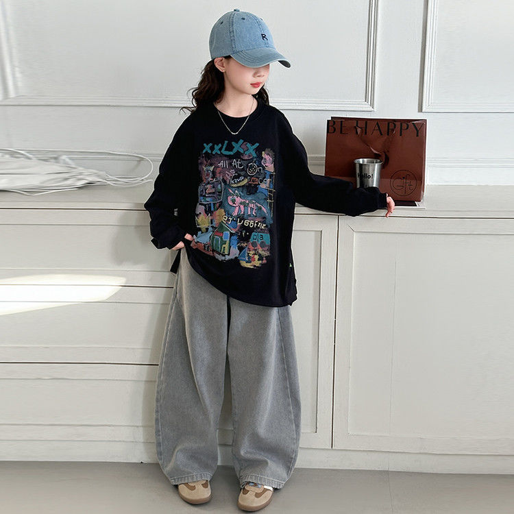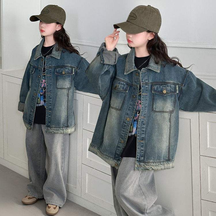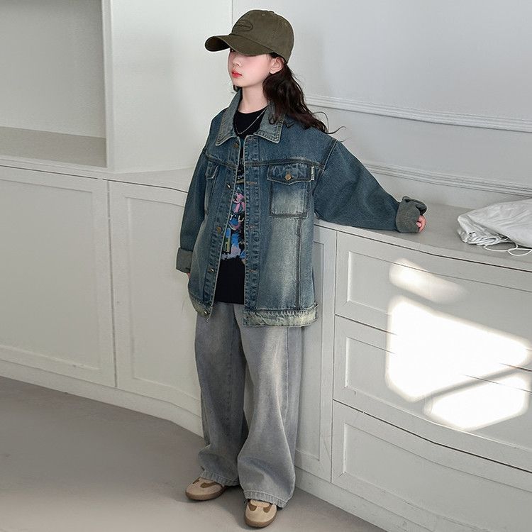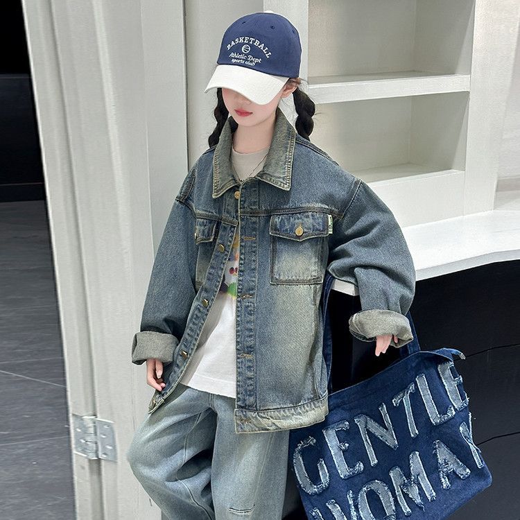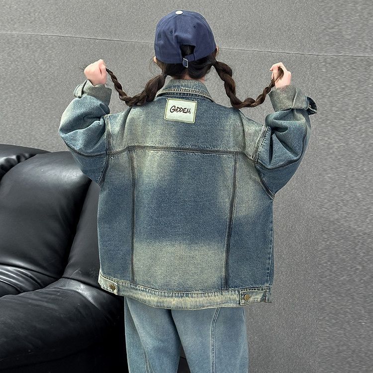 소녀 청바지 코트 봄과 가을 2025 새로운 소녀 패션 복고풍 재킷 어린이 봄 세트