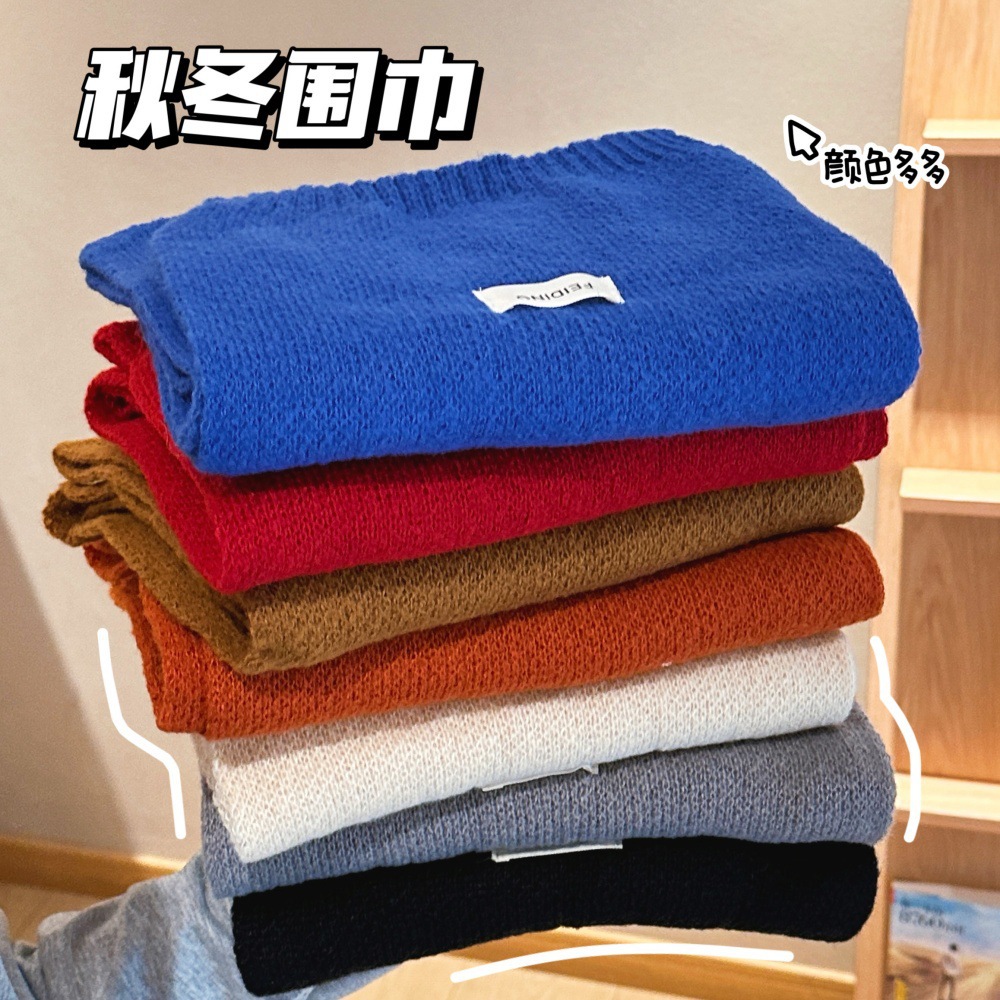 新款韩系秋冬纯色百搭围巾保暖舒适柔针织围脖时尚简约男女款围脖스토어 가기