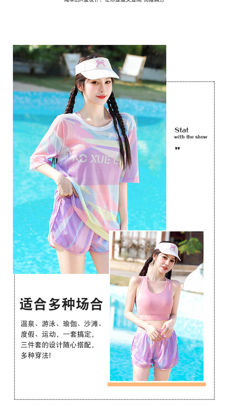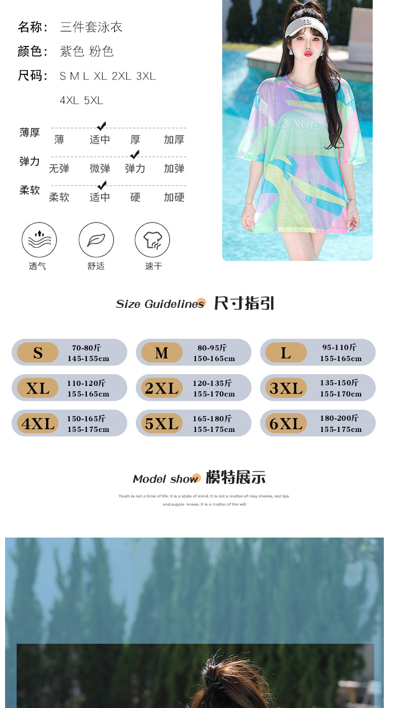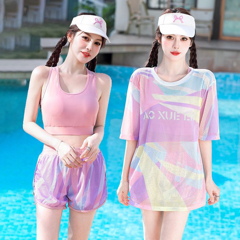 수영복 여성의 보수적 인 3 피스 세트 2025 새로운 폭발성 분할 경미한 뚱뚱한 소녀의 슬리밍 고기 커버 온천 수영복스토어 가기
