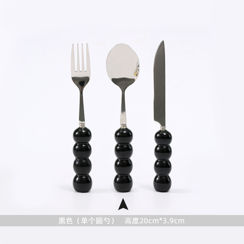 창조적 인 설탕 조롱박 수제 스테인레스 스틸 컬러 서양 음식 칼 포크 스푼 식기 세트 디저트 케이크 포크 컬러 세라믹