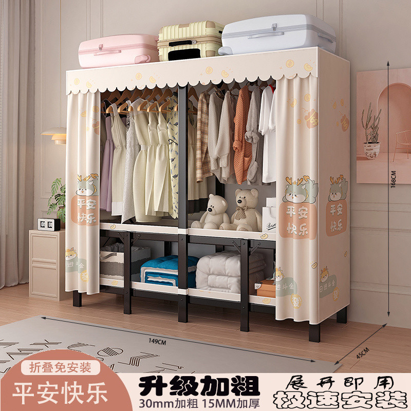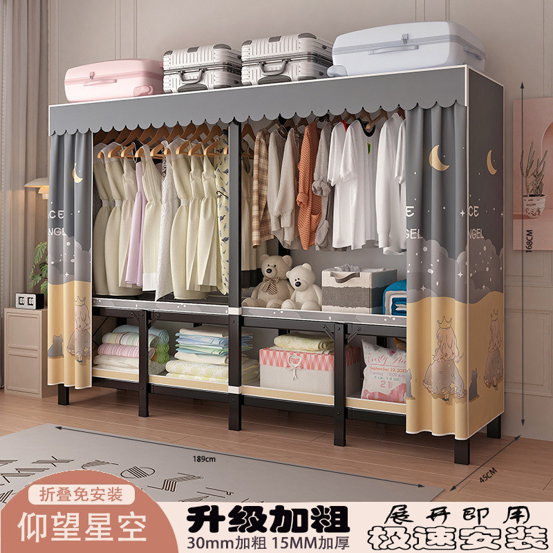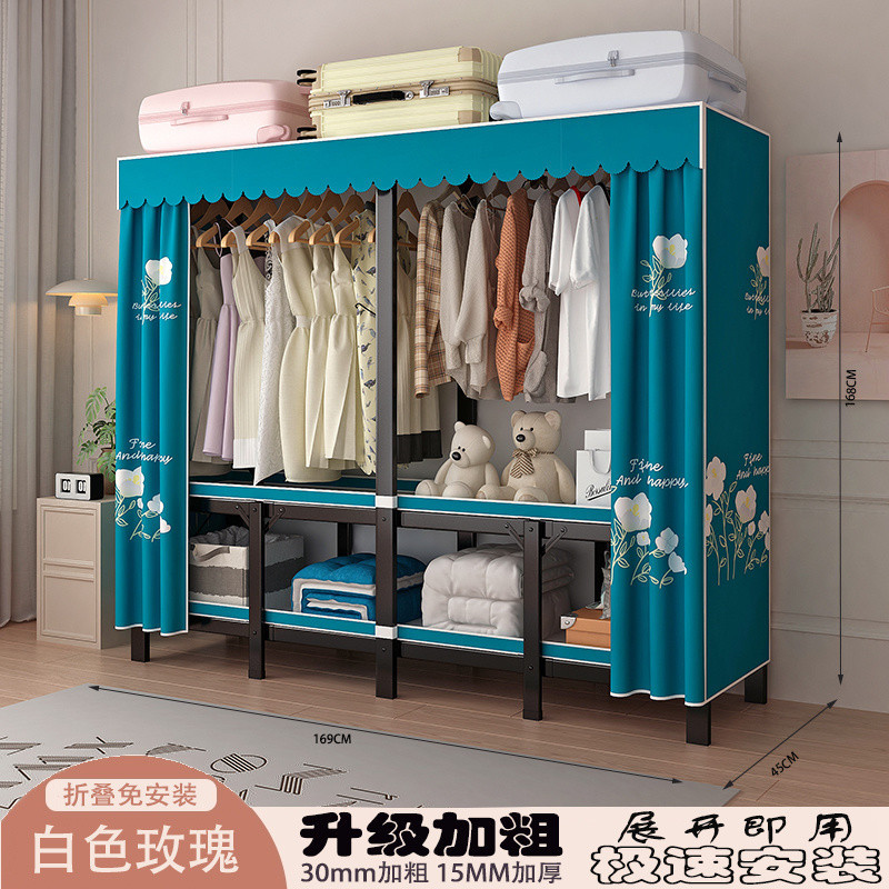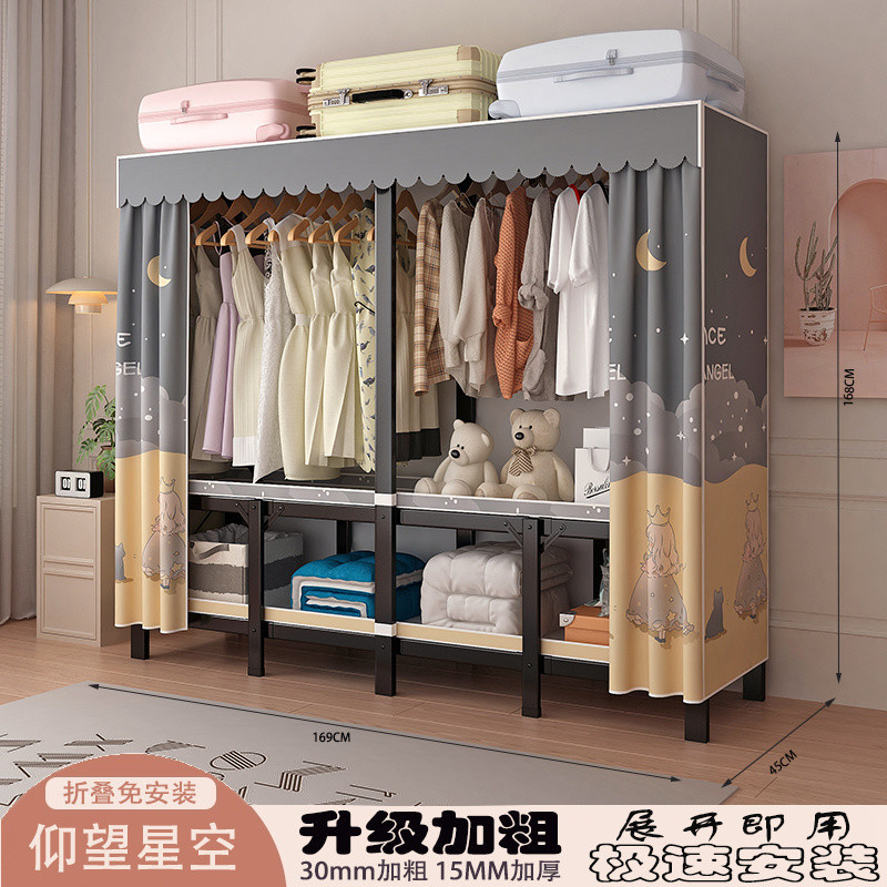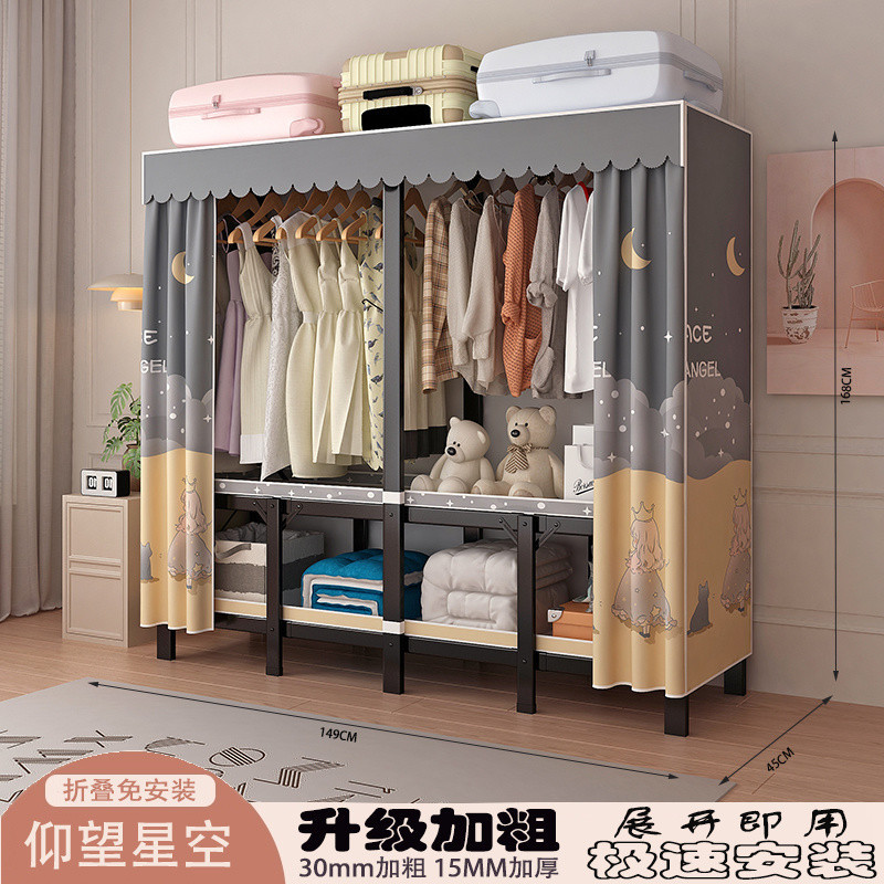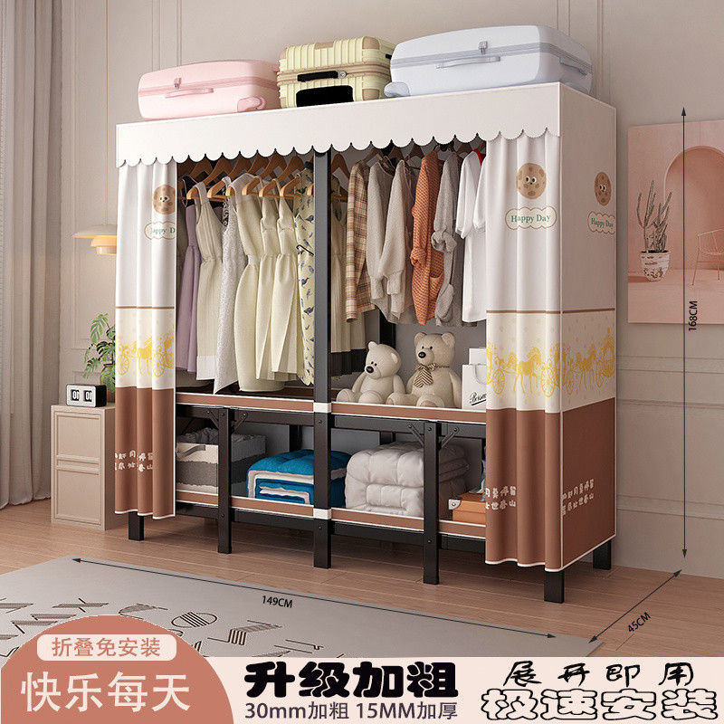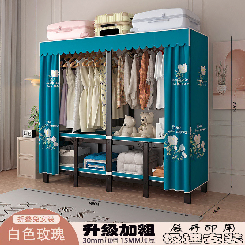 Yf3 설치-무료 옷장 접히는 간단한 천 옷장 홈 침실 임대 방 강력한 강화 굵은 강철 파이프 붕괴스토어 가기