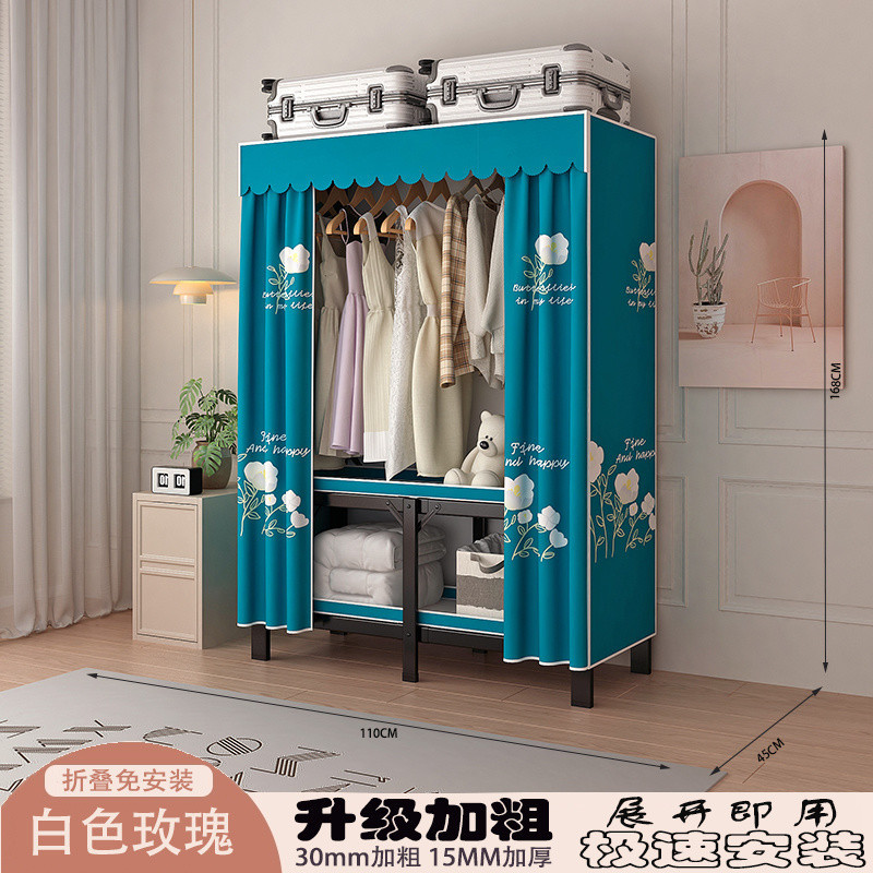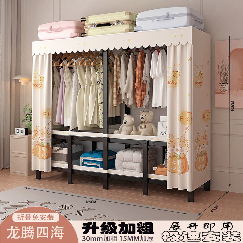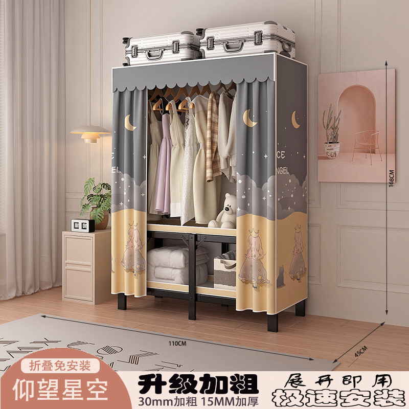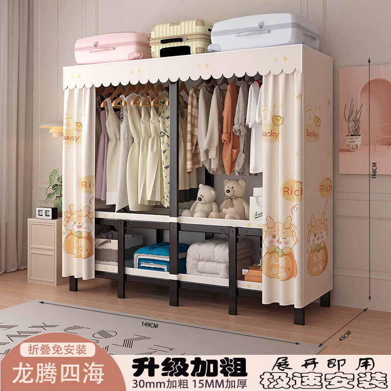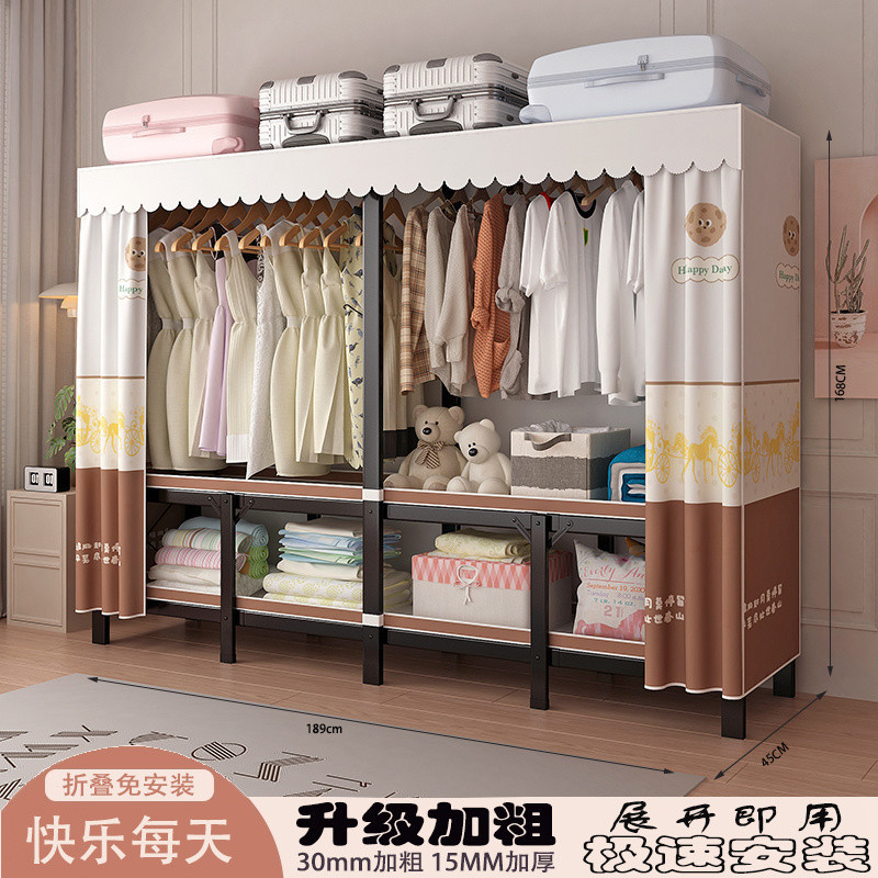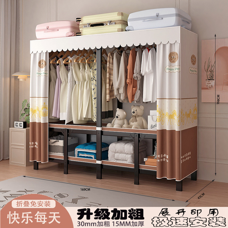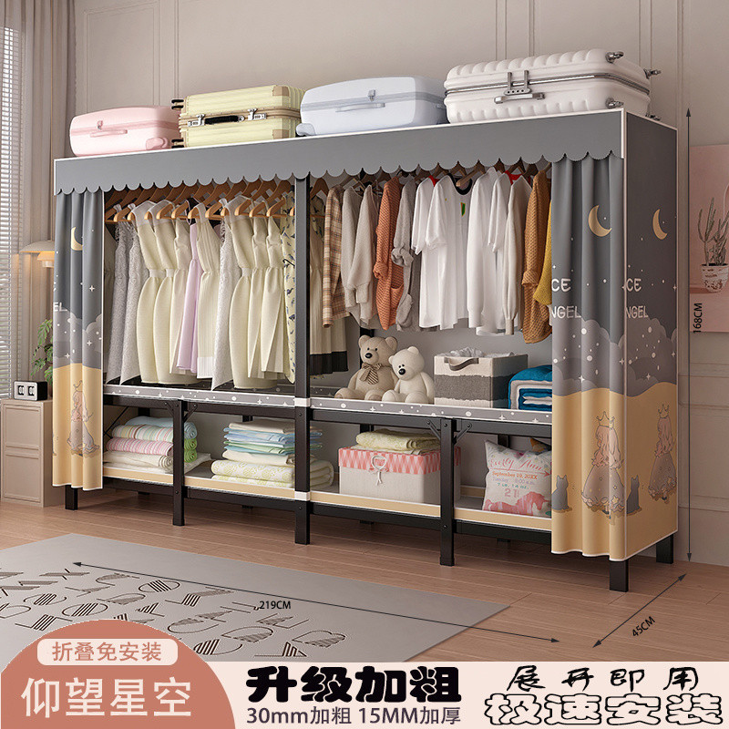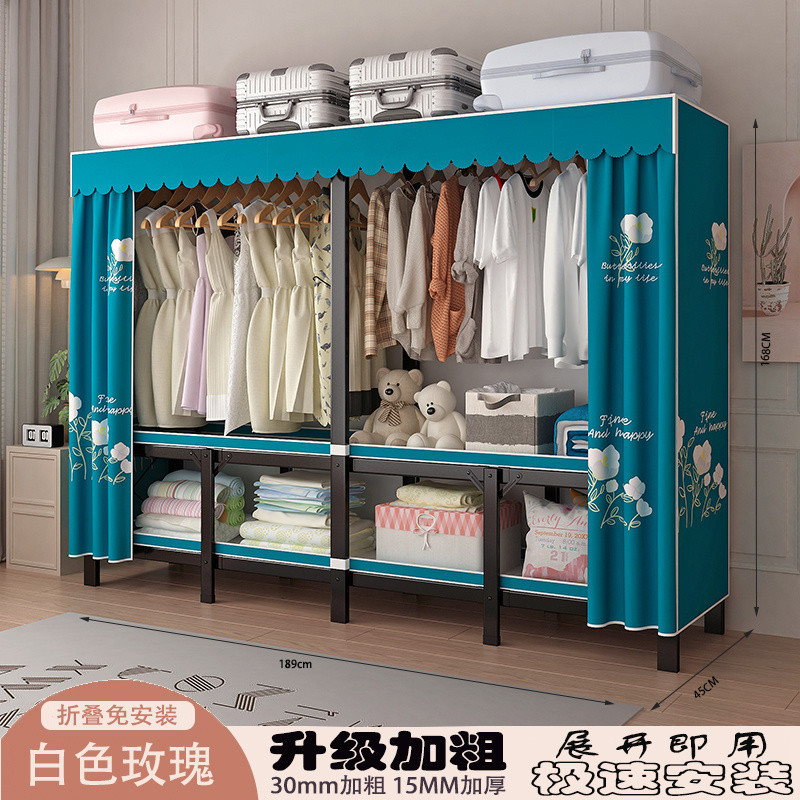 Yf3 설치-무료 옷장 접히는 간단한 천 옷장 홈 침실 임대 방 강력한 강화 굵은 강철 파이프 붕괴스토어 가기