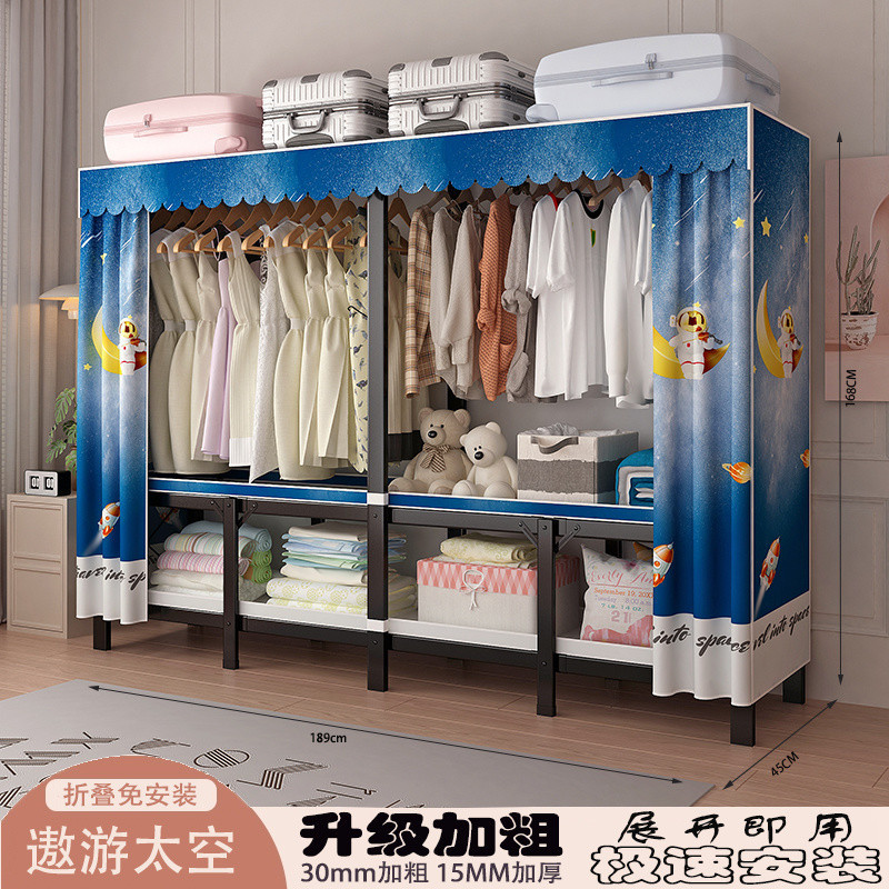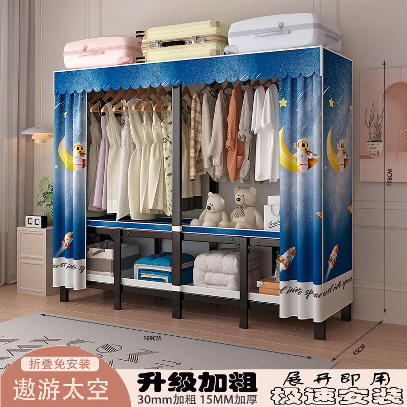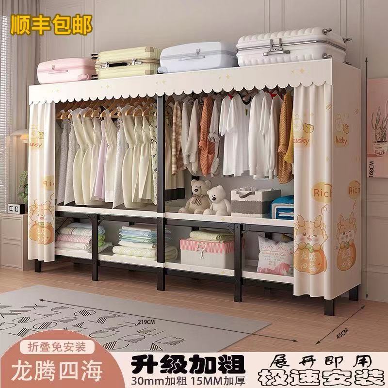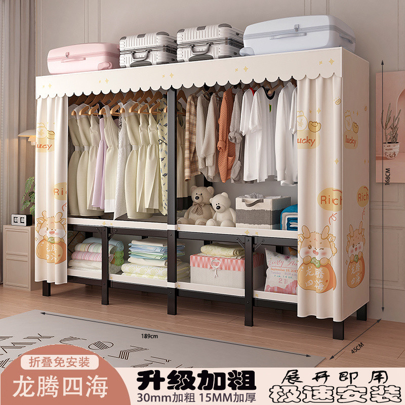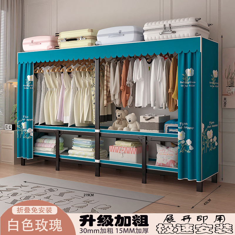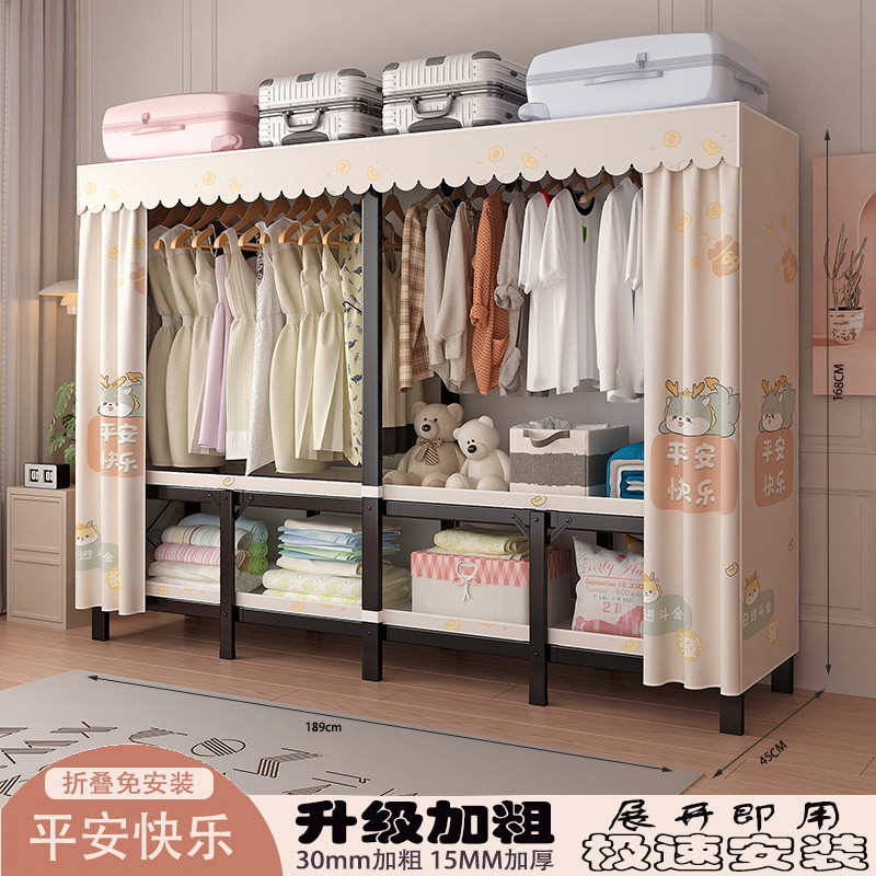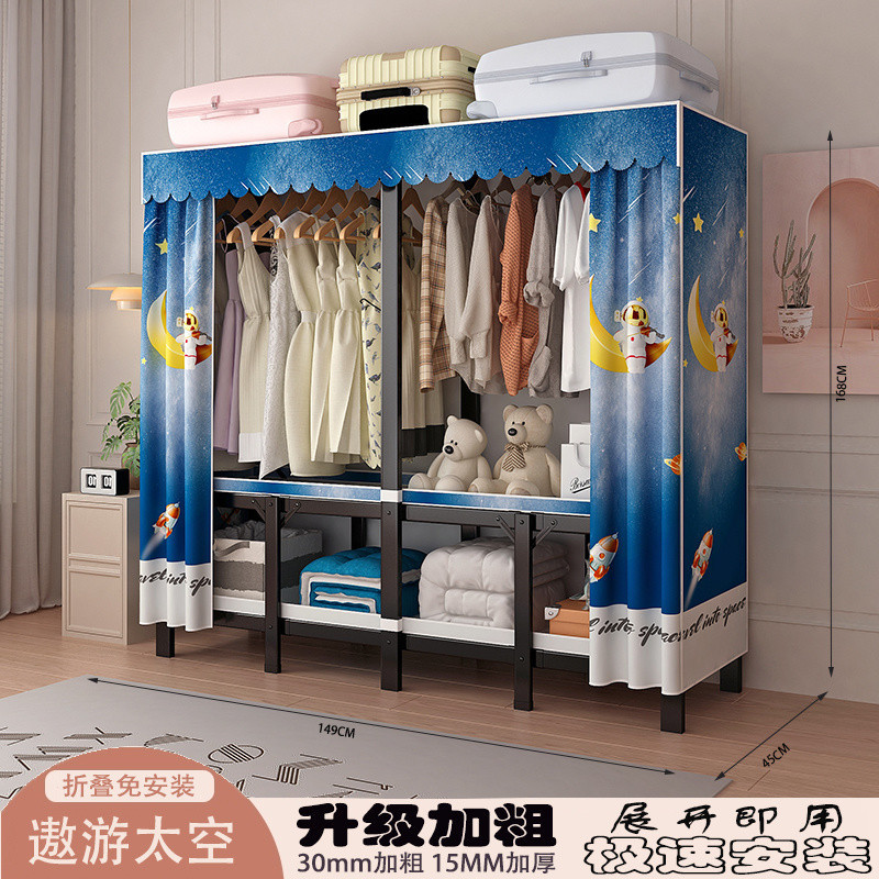 Yf3 설치-무료 옷장 접히는 간단한 천 옷장 홈 침실 임대 방 강력한 강화 굵은 강철 파이프 붕괴스토어 가기