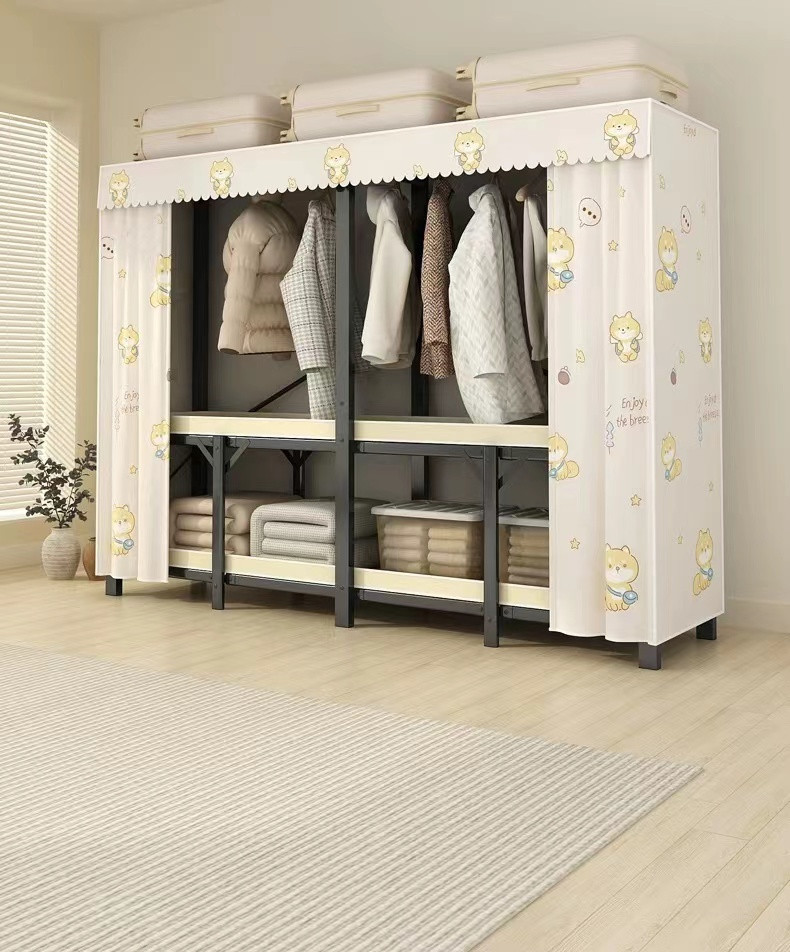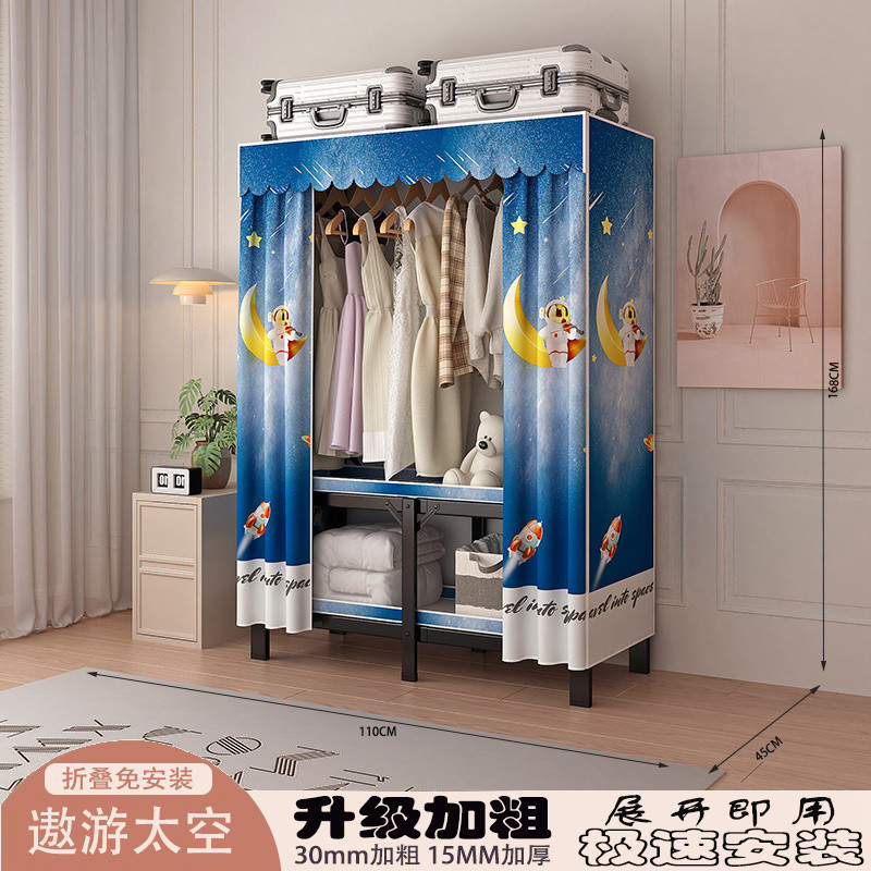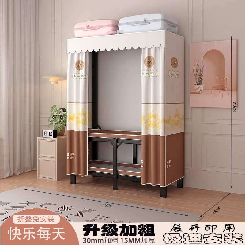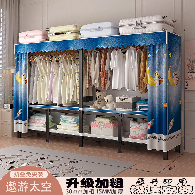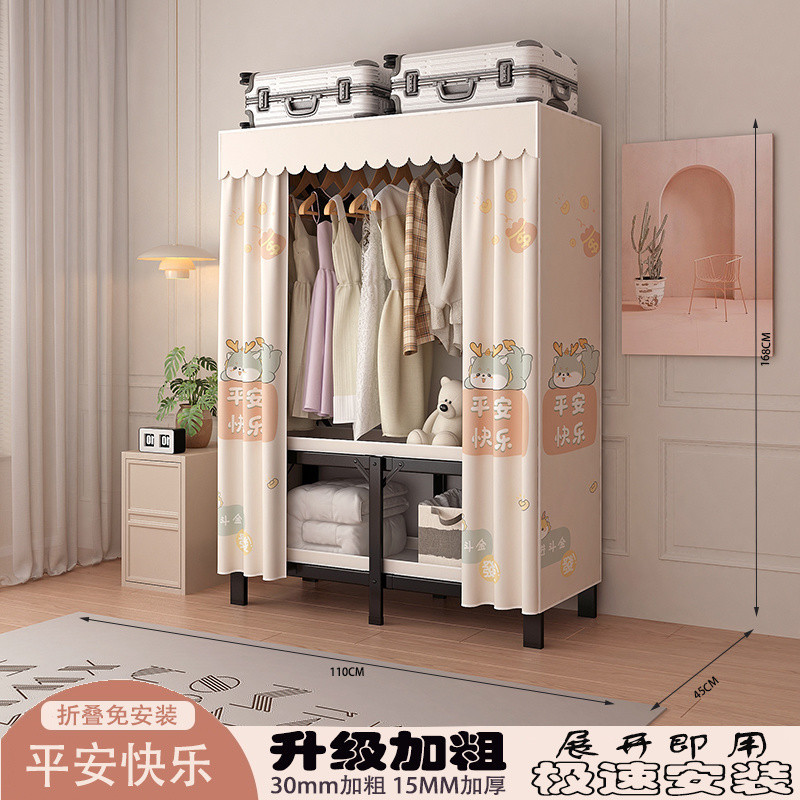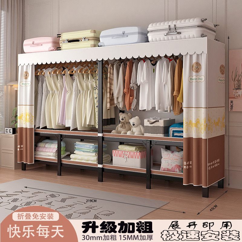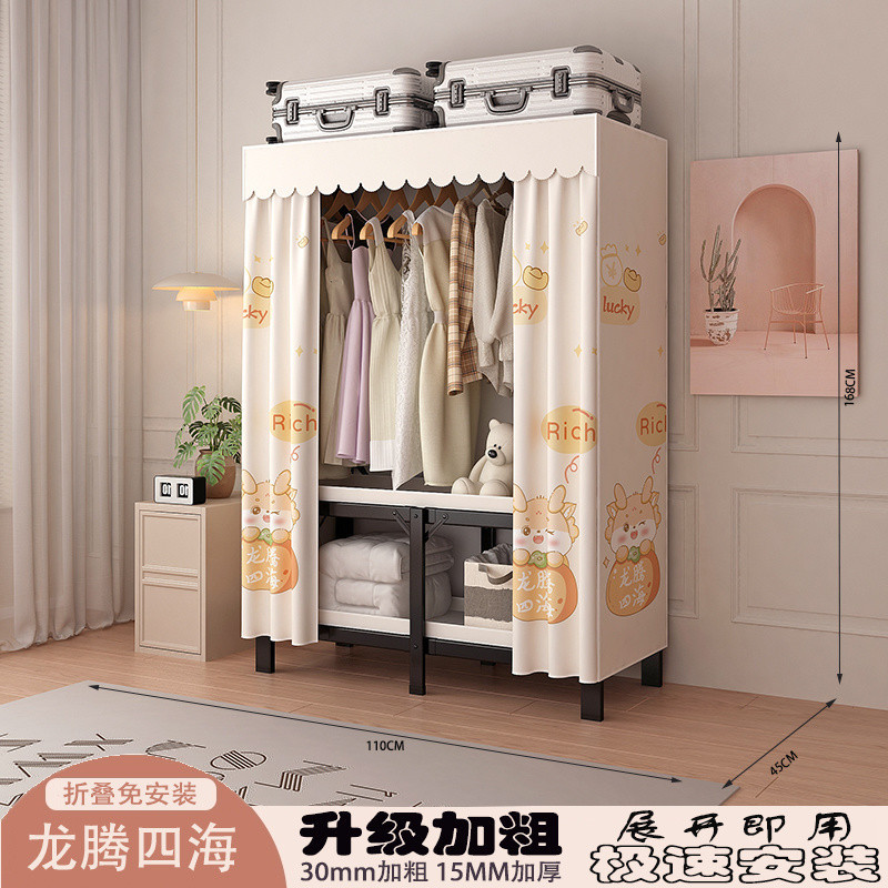 Yf3 설치-무료 옷장 접히는 간단한 천 옷장 홈 침실 임대 방 강력한 강화 굵은 강철 파이프 붕괴스토어 가기
