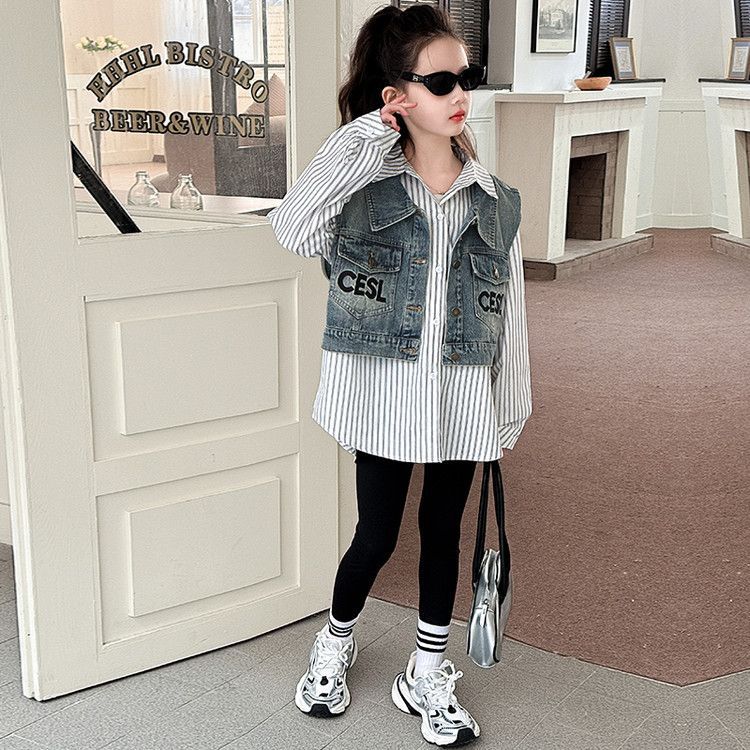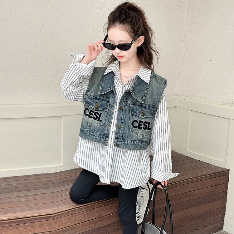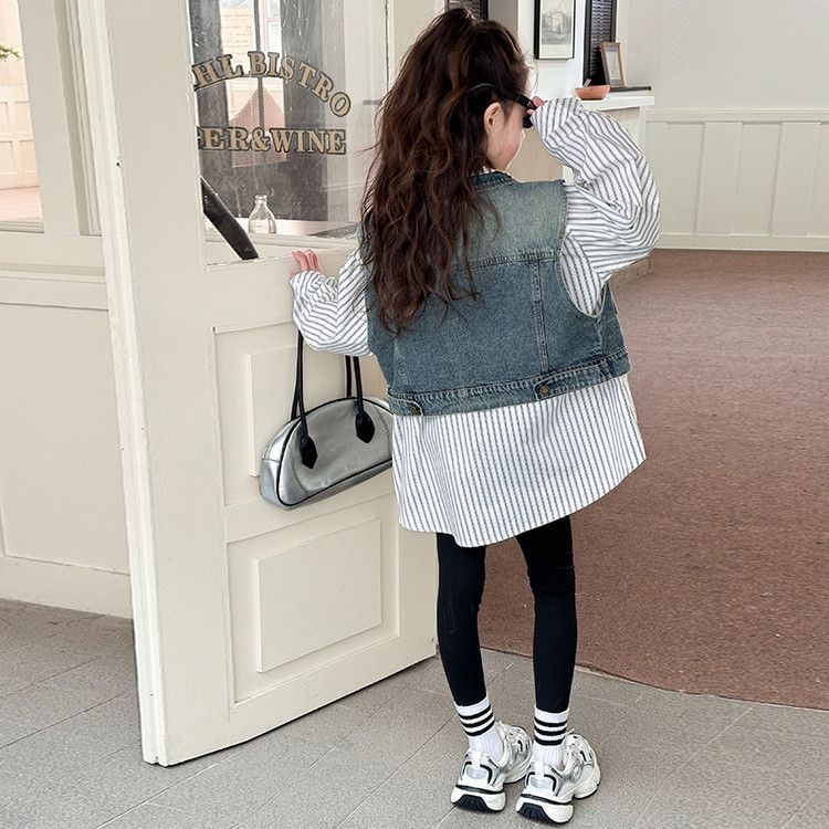 소녀의 봄 데님 조끼 세트 2025 새로운 어린이 유행 카디건 소녀 봄 투피스 세트스토어 가기
