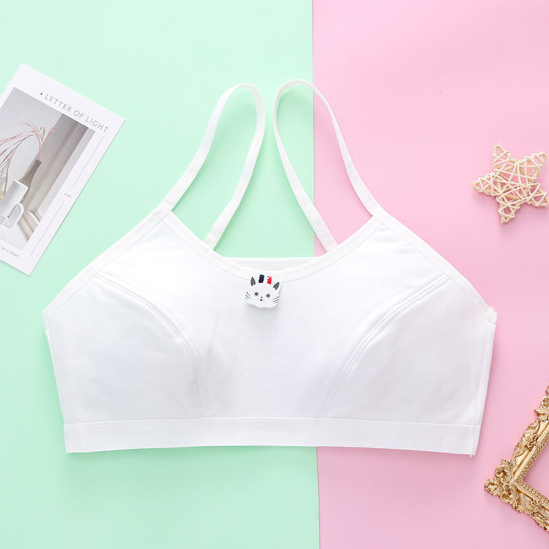 초등 및 중등 학생을 위한 소녀의 순면 통기성 속옷, 발달 기간, 와이어 없음, 이중층 누비 조끼, 두꺼운 여성용 브래지어스토어 가기